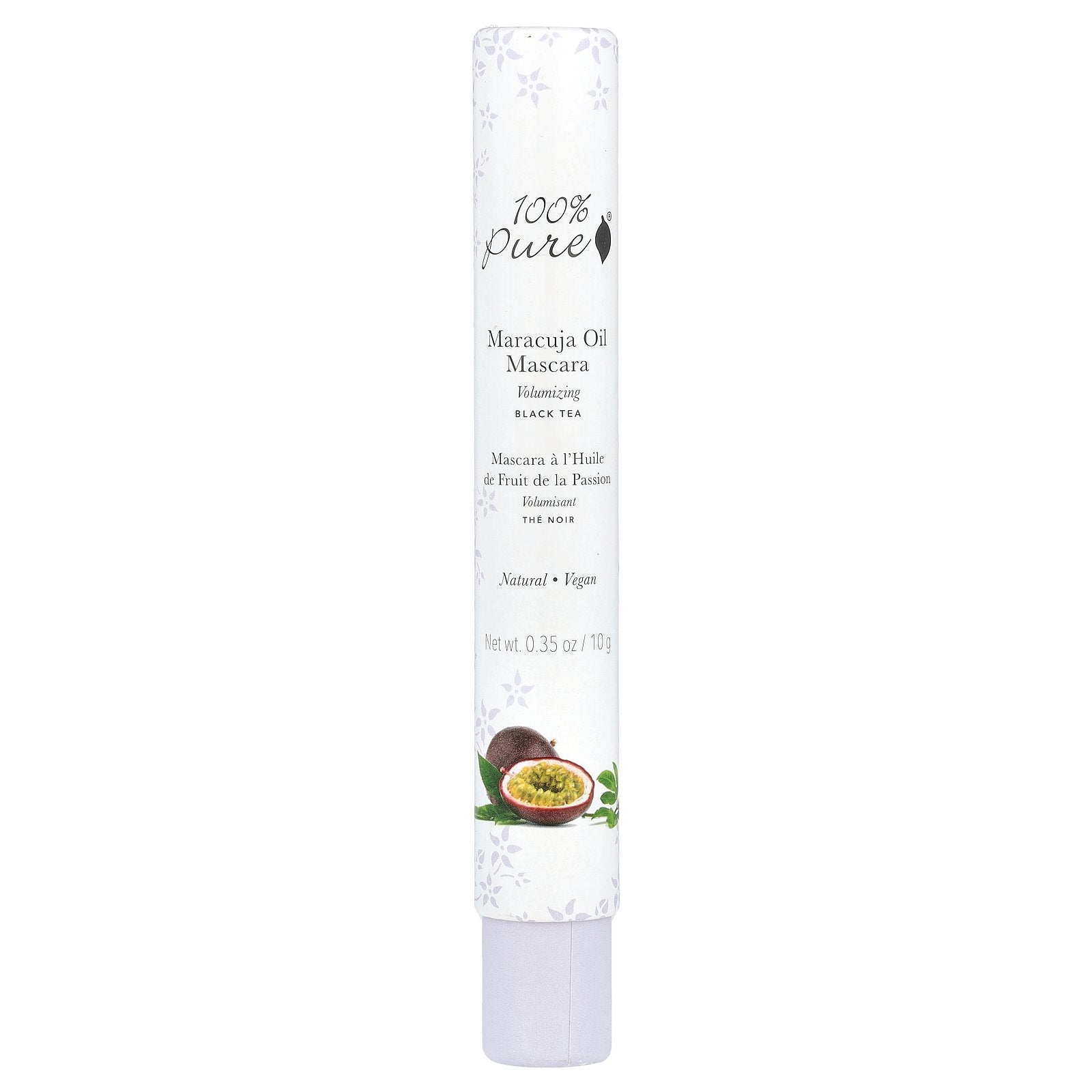 Maracuja oil from passion fruit makes for a luscious, lash volumizing mascara formula that won't dump or flake. Infused with lash conditioning vitamins and deeply pigmented by tea, cocoa, and coffee beans -- not synthetic dyes. Fitted with a tapered oval tip for creating dramatic volume and coating each lash in healthy conditioners and stunning natural pigment.
