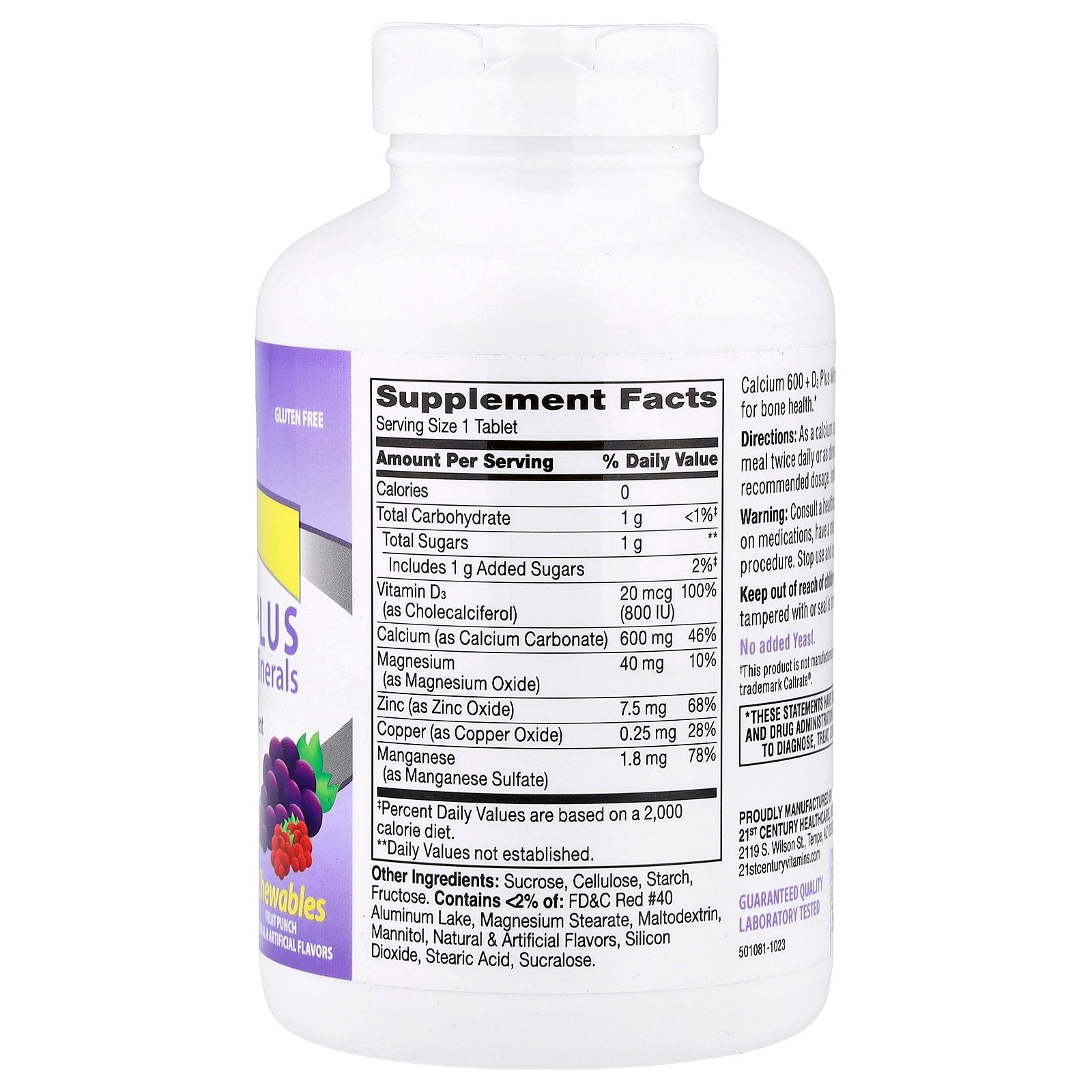 | Calcium (as Calcium Carbonate) | 600 mg | 46% |