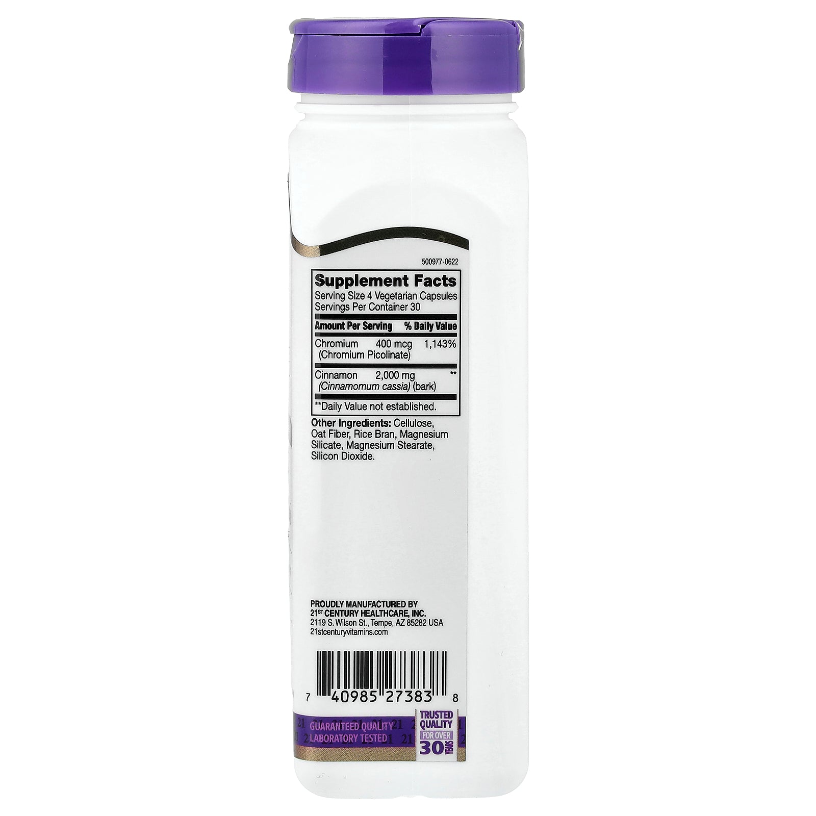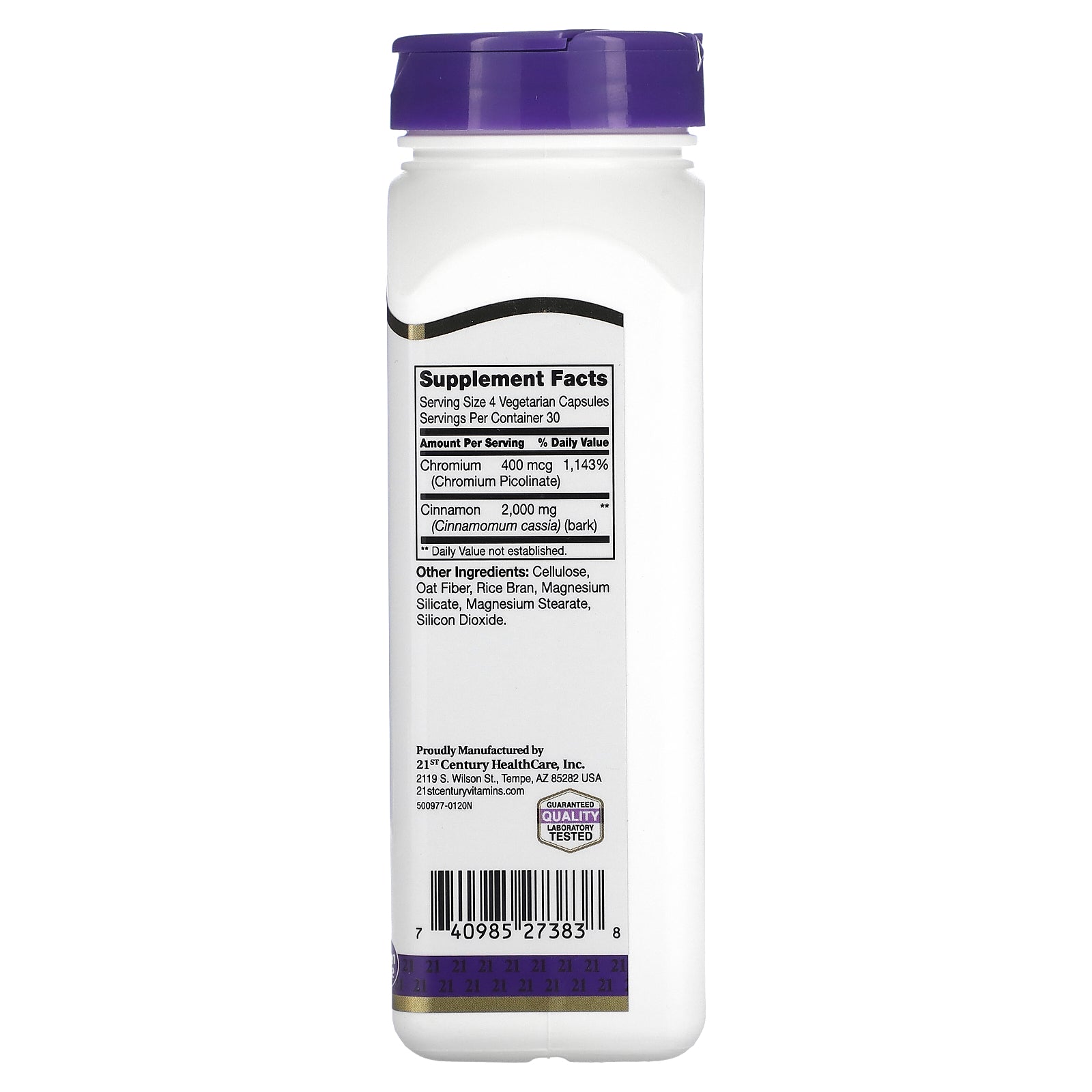 Cinnamon and Chromium Picolinate both support normal sugar and carbohydrate metabolism when combined with a healthy diet and exercise program.