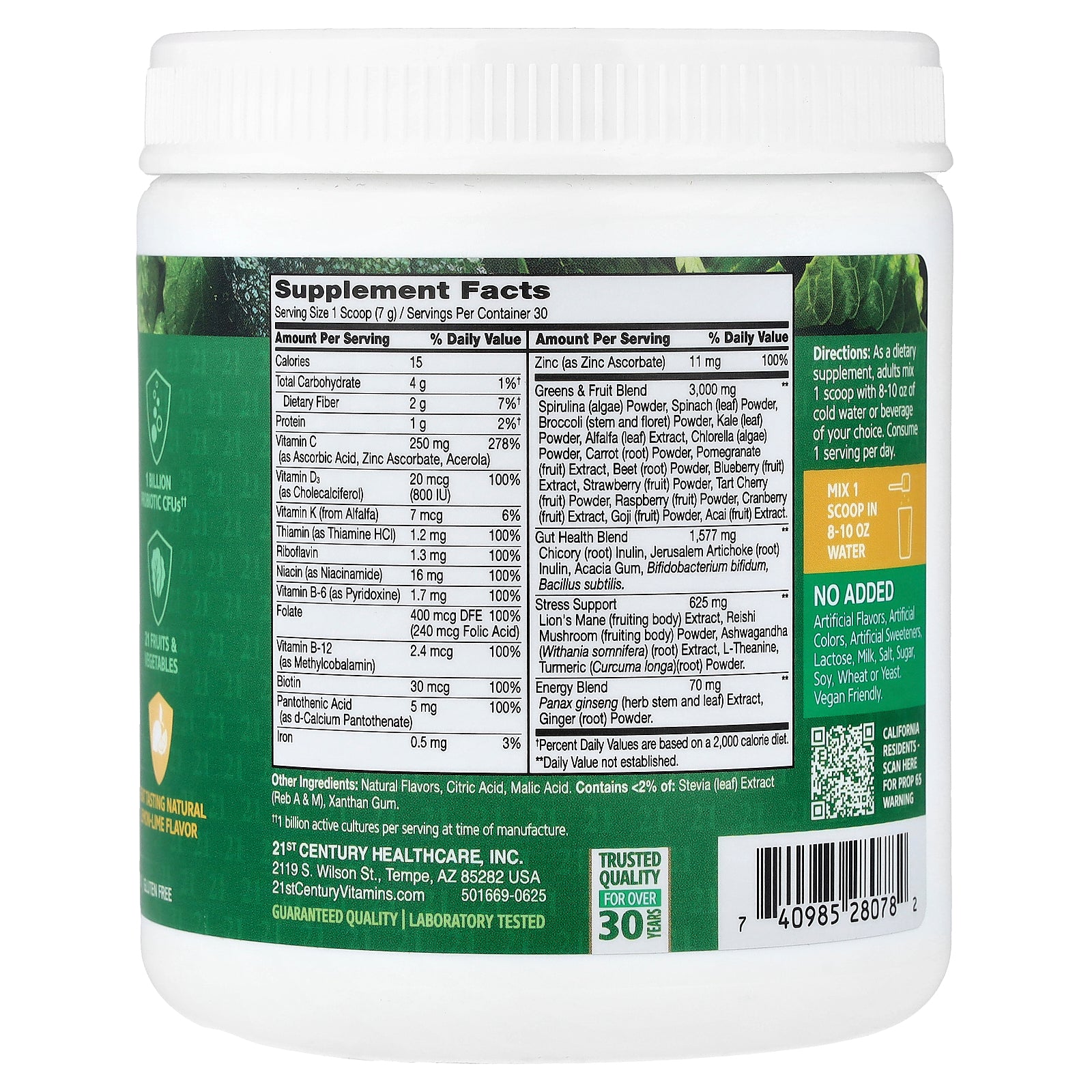 21ST Century® Daily Greens Superfoods Powder is a nutrient-dense blend of greens, fruits, vegetables and botanicals designed to support your body's natural functions. Each serving provides essential nutrients that support gut health, energy, immune function, stress management and natural detoxification.