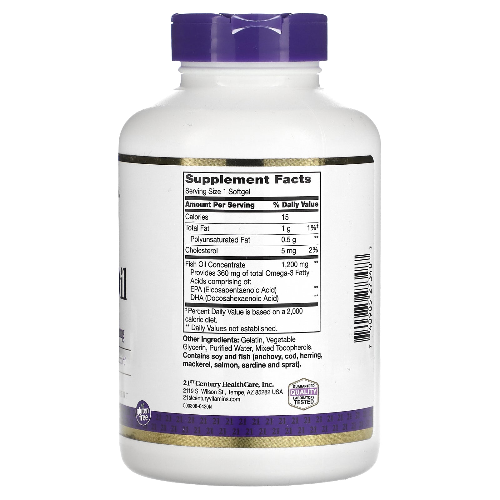 EPA and DHA are important Omega-3 fatty acids that support cardiovascular health as well as being important components of the cells in the body. 21st Century Fish Oil contains high quality molecularly distilled fish oil concentrate.
