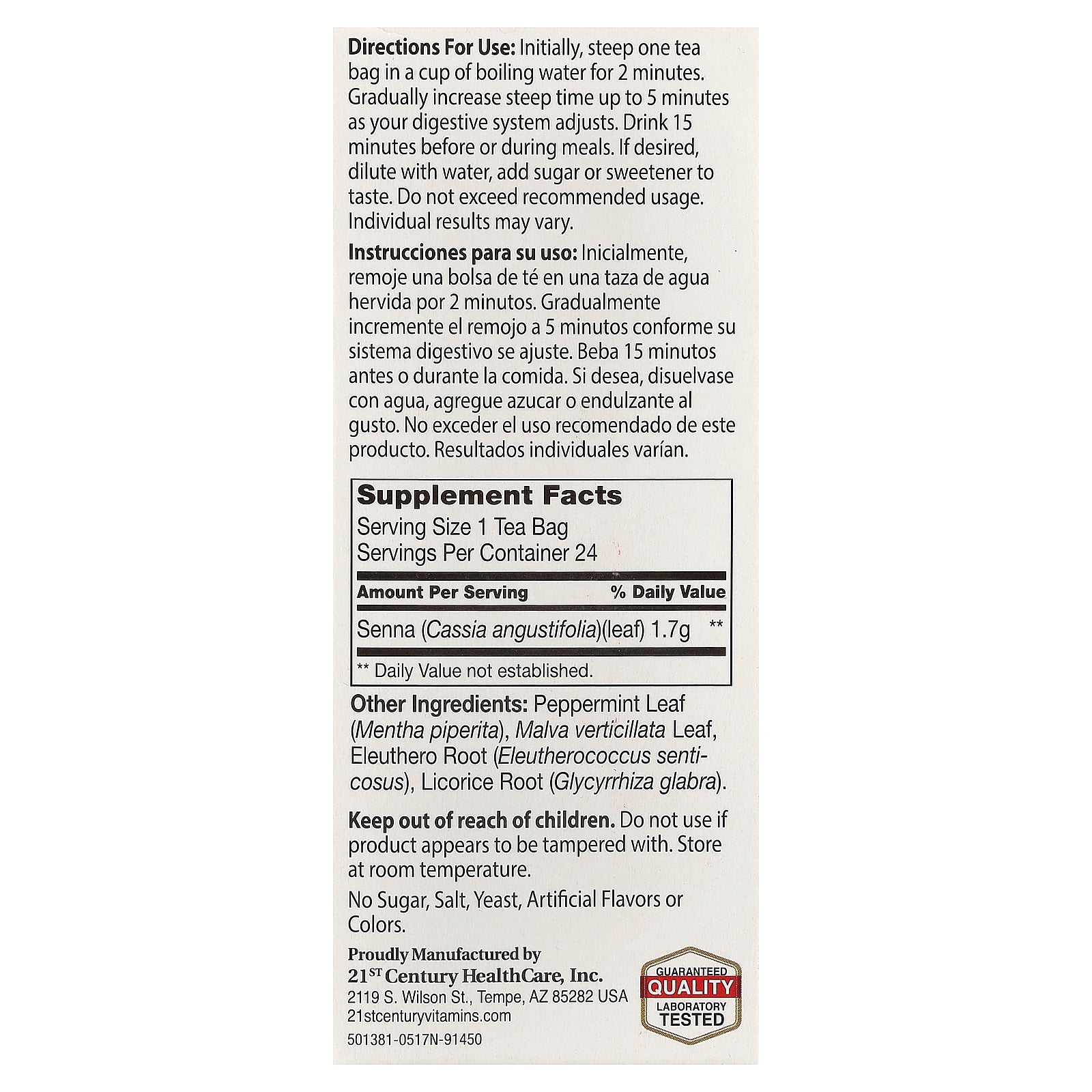 Notice: This product contains Senna leaves. Read and follow directions carefully. Do not use if you have or develop diarrhea, loose stools, or abdominal pain. Consult your physician if you have frequent diarrhea. If you are pregnant, nursing, taking medication, or have a medical condition, consult a physician before using this product.