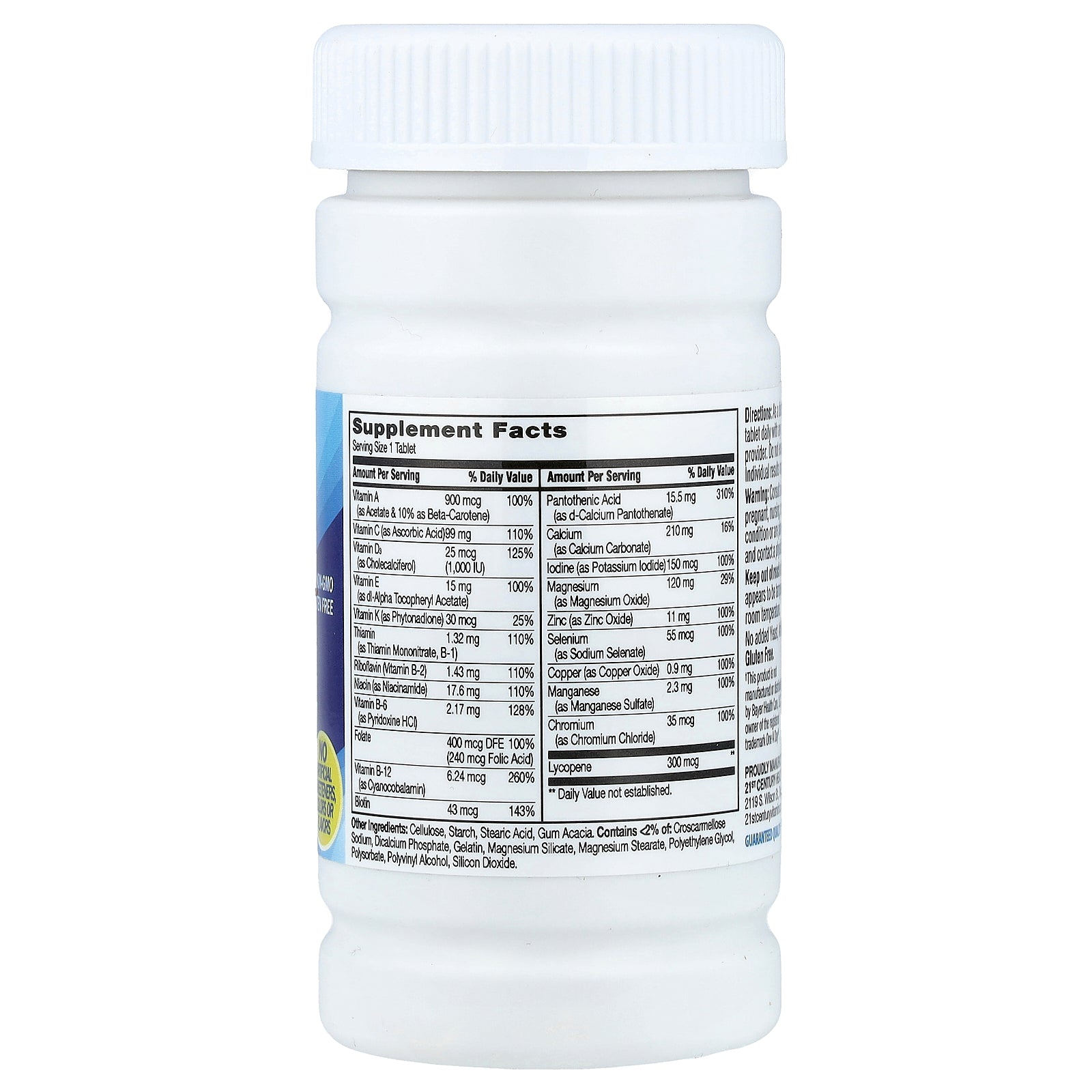 Cellulose, starch, stearic acid, gum acacia. Contains <2% of: Croscarmellose sodium, dicalcium phosphate, gelatin, magnesium silicate, magnesium stearate, polyethylene glycol, polysorbate, polyvinyl alcohol, silicon dioxide.