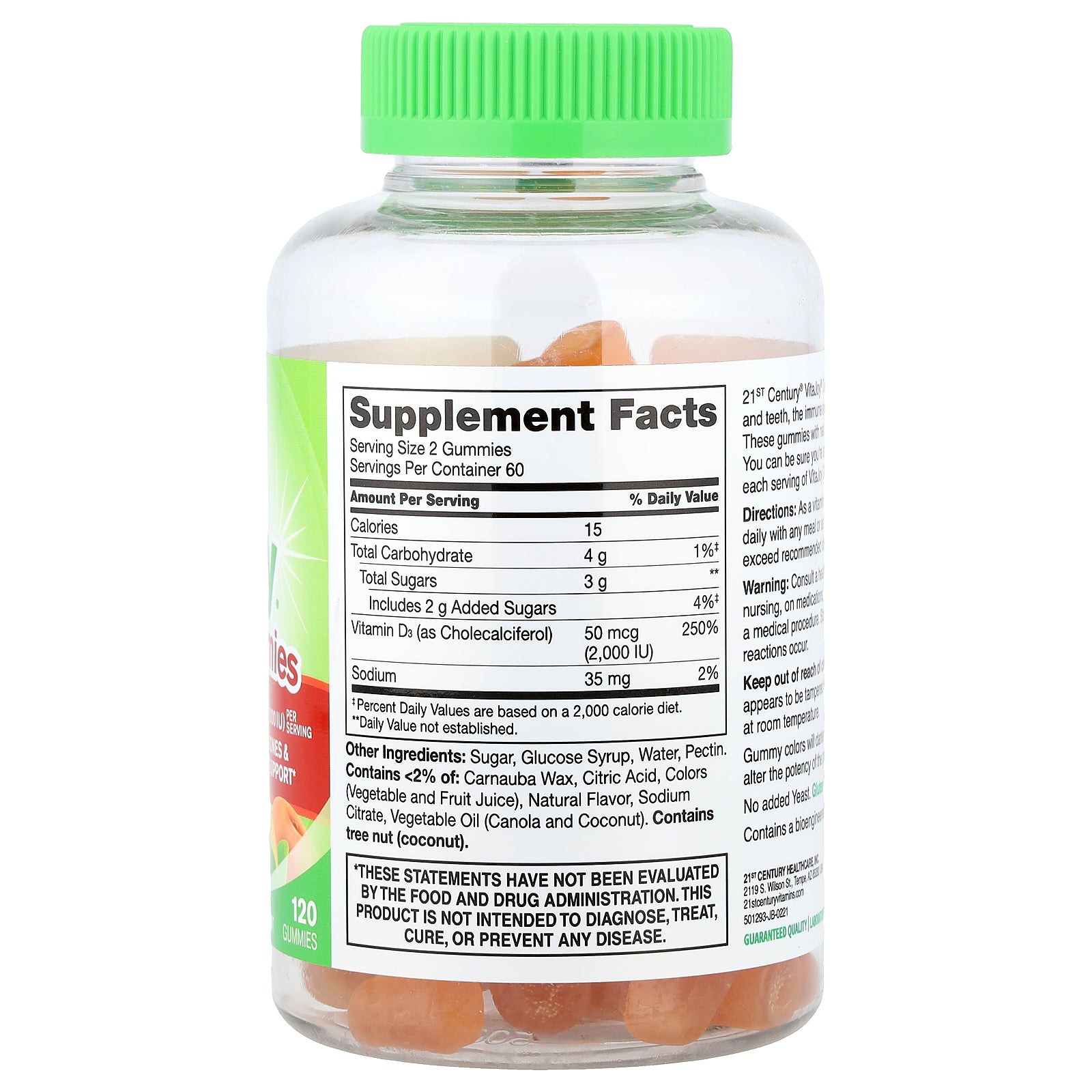 21ST Century® VitaJoy® Daily D3 Gummies support healthy bones and teeth, the immune system and the absorption of calcium. These gummies with naturally sourced peach flavor taste great too! You can be sure you're receiving valuable nutritional support with each serving of VitaJoy Daily D3 Gummies.