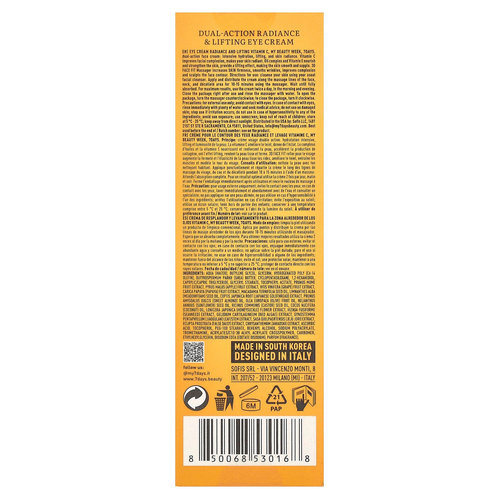 Aqua (water), butylene glycol, glycerin, hydrogenated poly (c6-14 olefin), butyrospermum parkii (shea) butter, cyclopentasiloxane, 1,2-hexanediol, caprylic/capric triglyceride, glyceryl stearate, tocopheryl acetate, prunus mume fruit extract, pyrus malus (apple) fruit extract, vitis vinifera (grape) fruit extract, carica papaya (papaya) fruit extract, macadamia ternifolia seed oil, limnanthes alba (meadowfoam) seed oil, coptis japonica root (japanese goldthread) extract, prunus amygdalus dulcis (sweet almond) oil, olea europaea (olive) fruit oil, helianthus annuus (sunflower) seed oil, ricinus communis (castor) seed oil, cocos nucifera (coconut) oil, lonicera japonica (honeysuckle) flower extract, hizikia fusiforme (seaweed) extract, gelidium cartilagineum (red algae) extract, gynostemma pentaphyllum (jiaogulan) leaf/stem extract, sasa quelpaertensis (jeju jori) extract, eclipta prostrata (false daisy) extract, chrysanthemum zawadskii extract, ascorbic acid, tocopherol, peg-100 stearate, behenyl alcohol, sodium polyacrylate, tromethamine, acrylates/c10-30 alkyl acrylate crosspolymer, carbomer, ethylhexylglycerin, disodium edta (edetate disodium), parfum (fragrance).