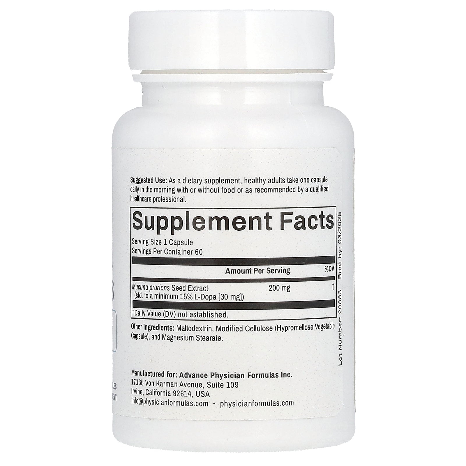 | Mucuna Pruriens Seed Extract (std. to a minimum 15% L-Dopa [30 mg]). |