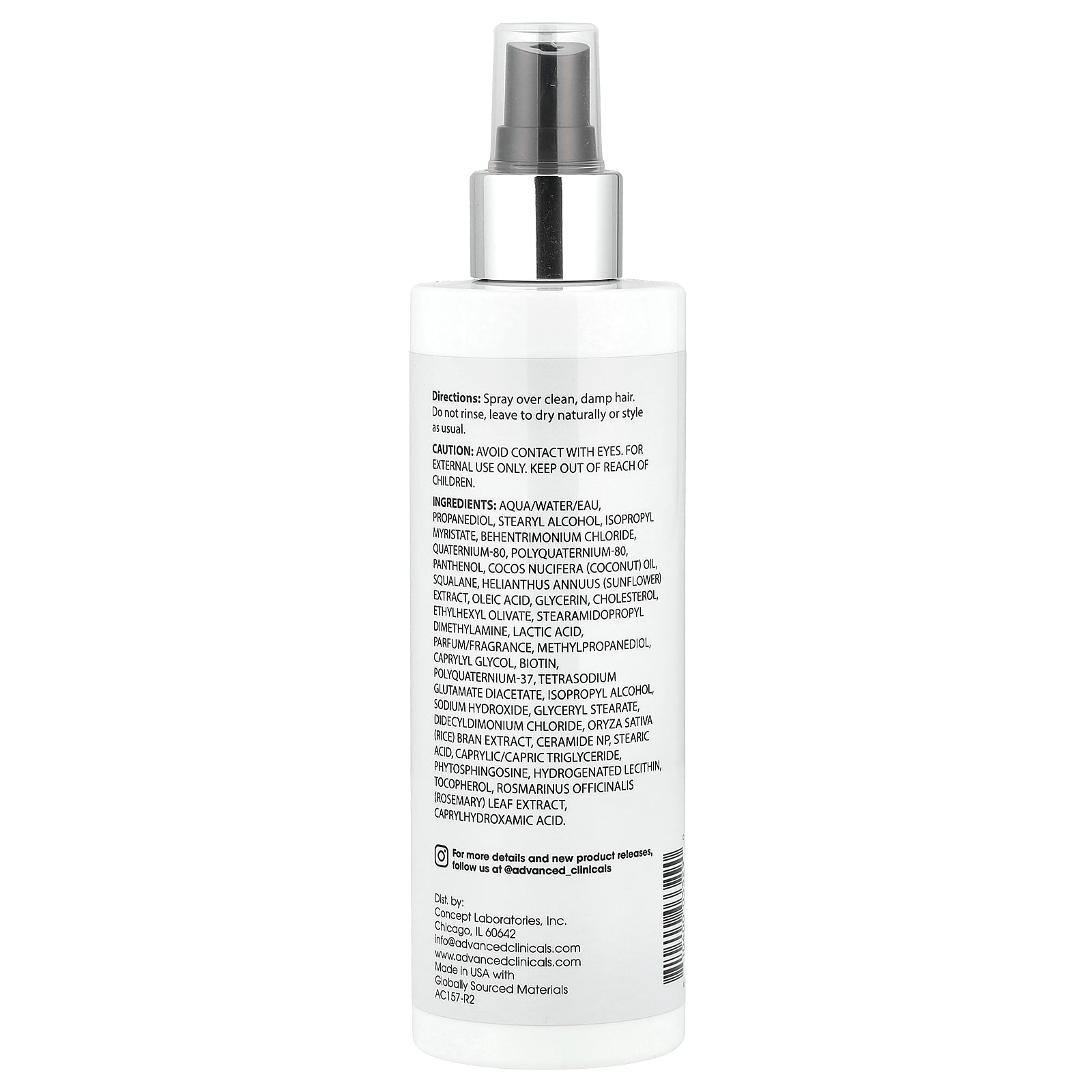 Advanced Clinicals Biotin Leave-In Treatment instantly repairs splits ends and nourishes frizz-prone hair. This leave-in treatment supports scalp health, leading to stronger and thicker hair. Formulated with Biotin, it instantly smooths hair damaged by heat styling and physical stressors. This weightless spray fights fly-a ways and restores shine to damaged strands.