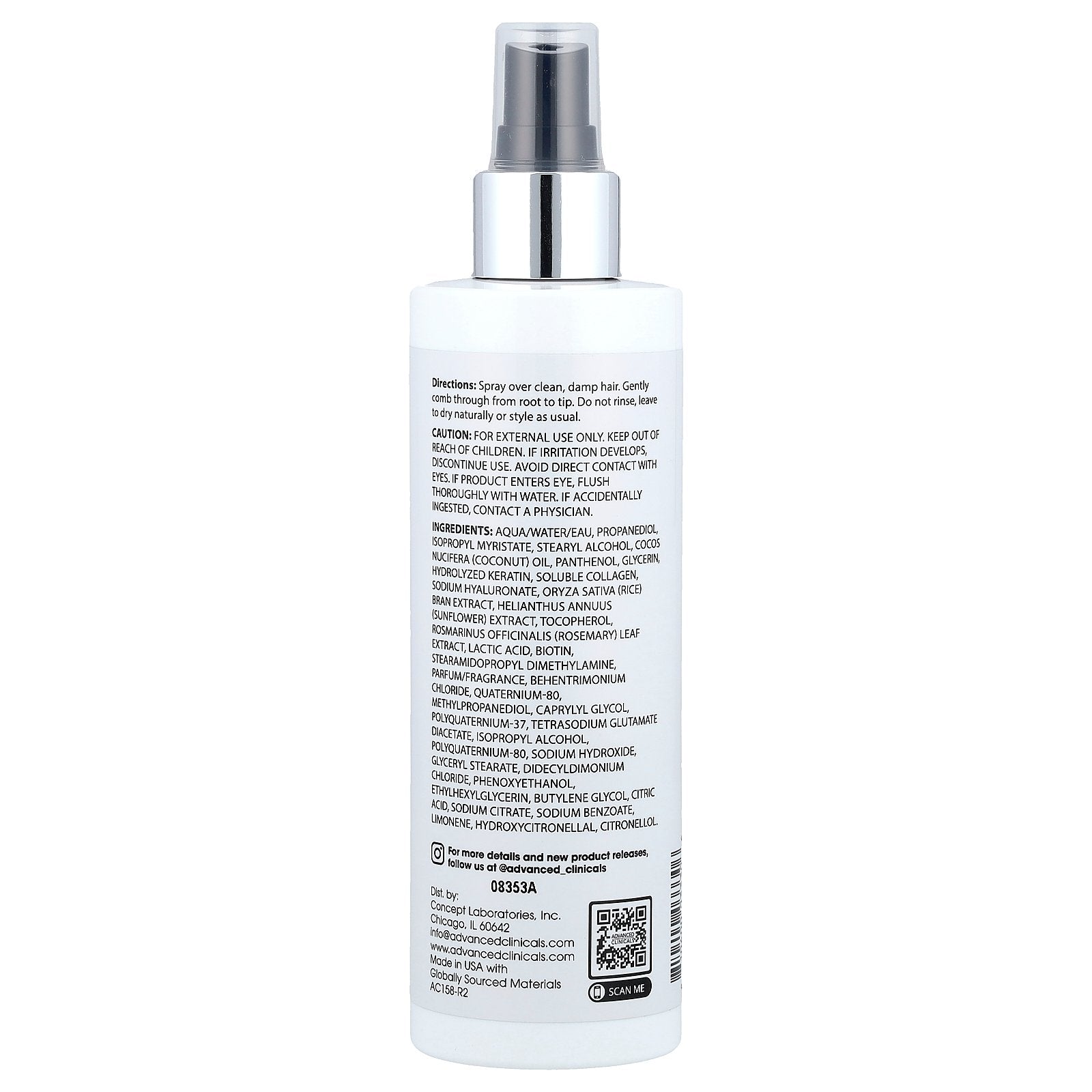 Advanced Clinicals Keratin Smoothing Leave In-Conditioner is an easy convenient spray that protects, conditions and smooths your hair. Keratin creates a softer and silkier look, by making your hair cuticles less prone to frizz. Keratin works by smoothing down hair cells and combating dryness. This formula works on all hair types. 100% clean beauty.