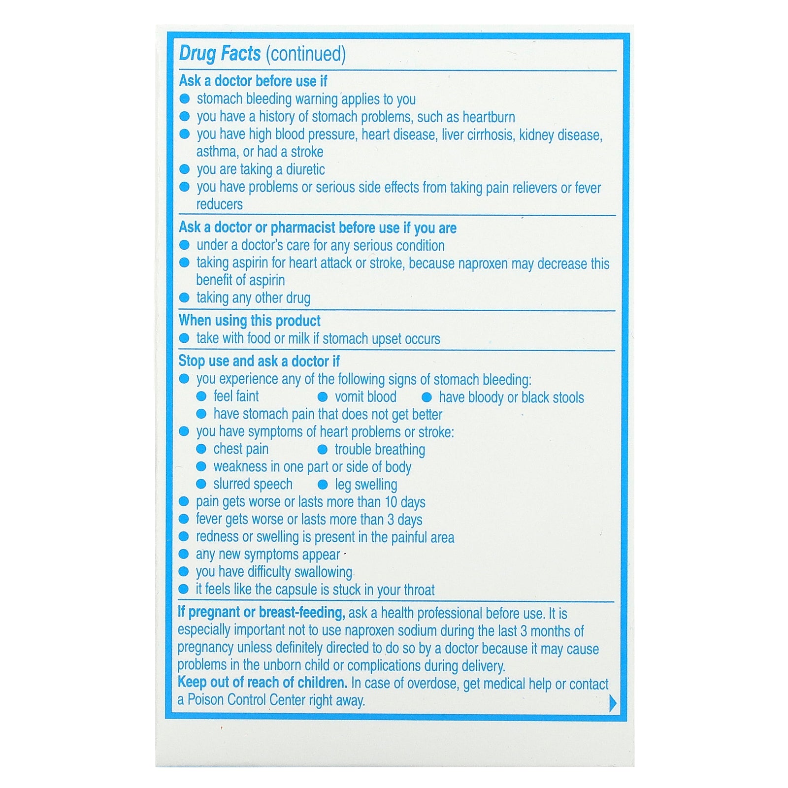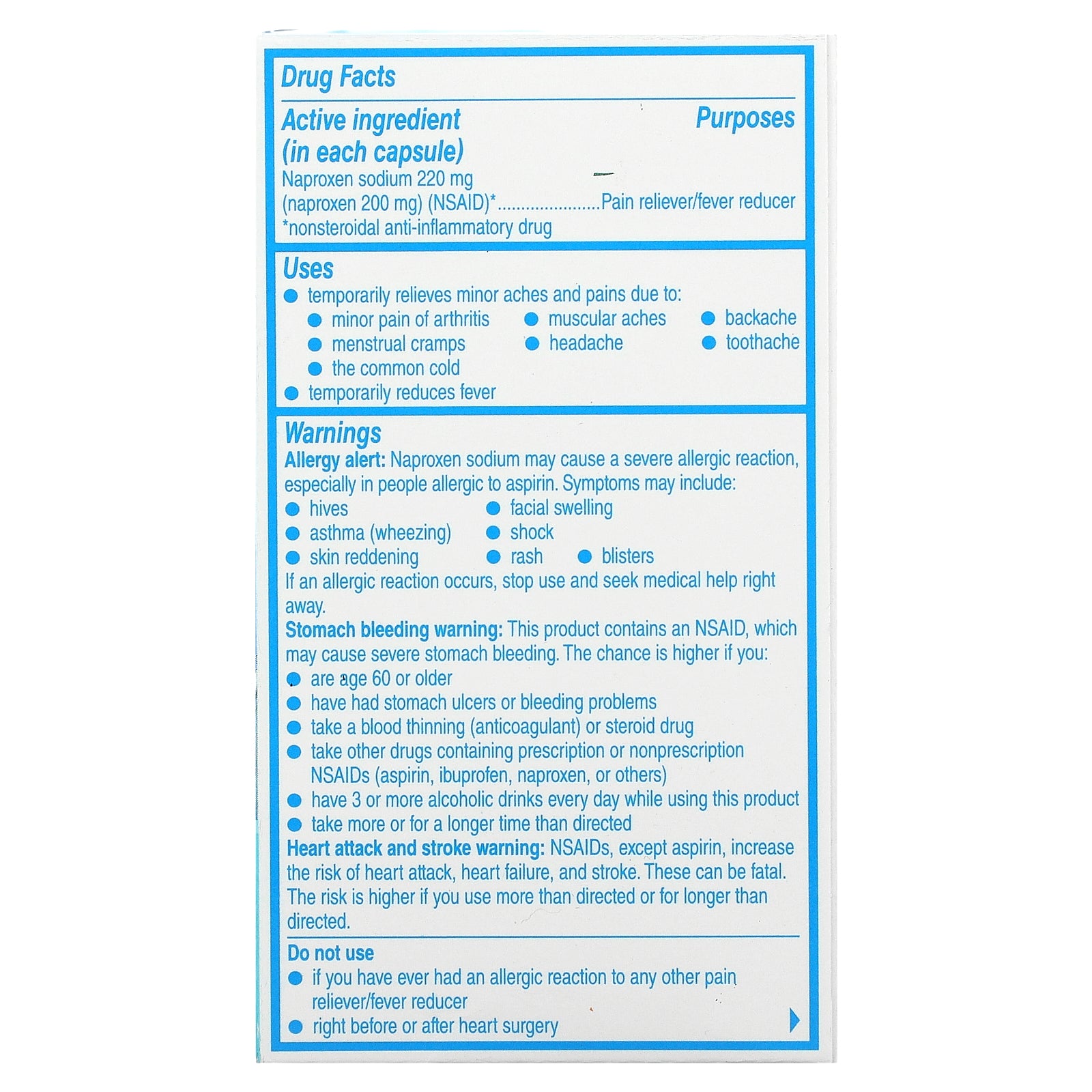 Aleve Liquid Gels are a great way to relieve your pain instead of letting your pain manage you. Just 2 capsules provides all day pain relief from minor aches and pains. Each pill has the strength to last 12 hours.