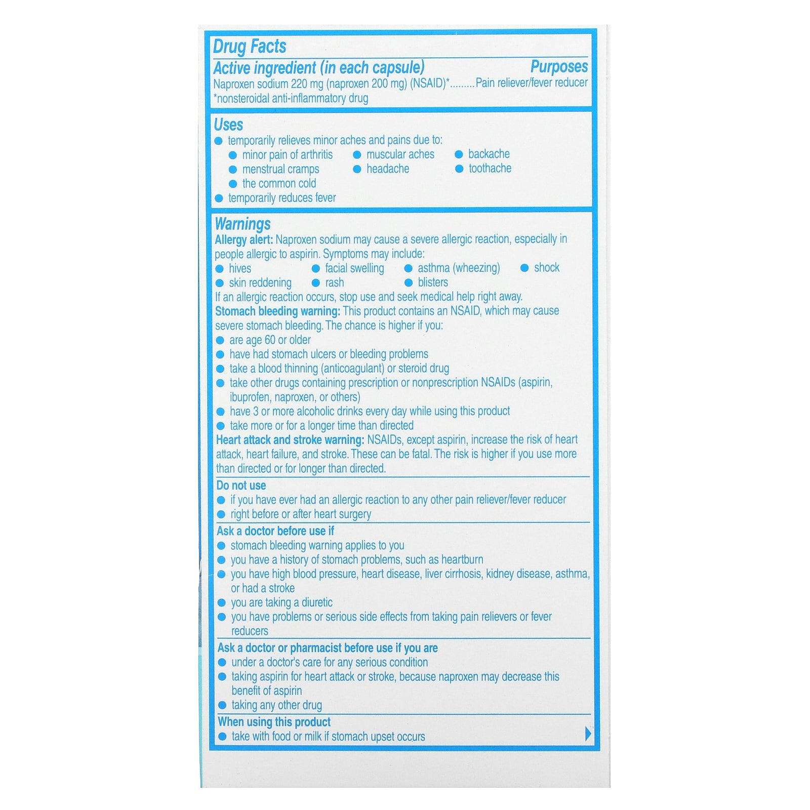 Aleve Liquid Gels are a great way to relieve your pain instead of letting your pain manage you. Just 2 capsules provides all day pain relief from minor aches and pains. Each pill has the strength to last 12 hours.