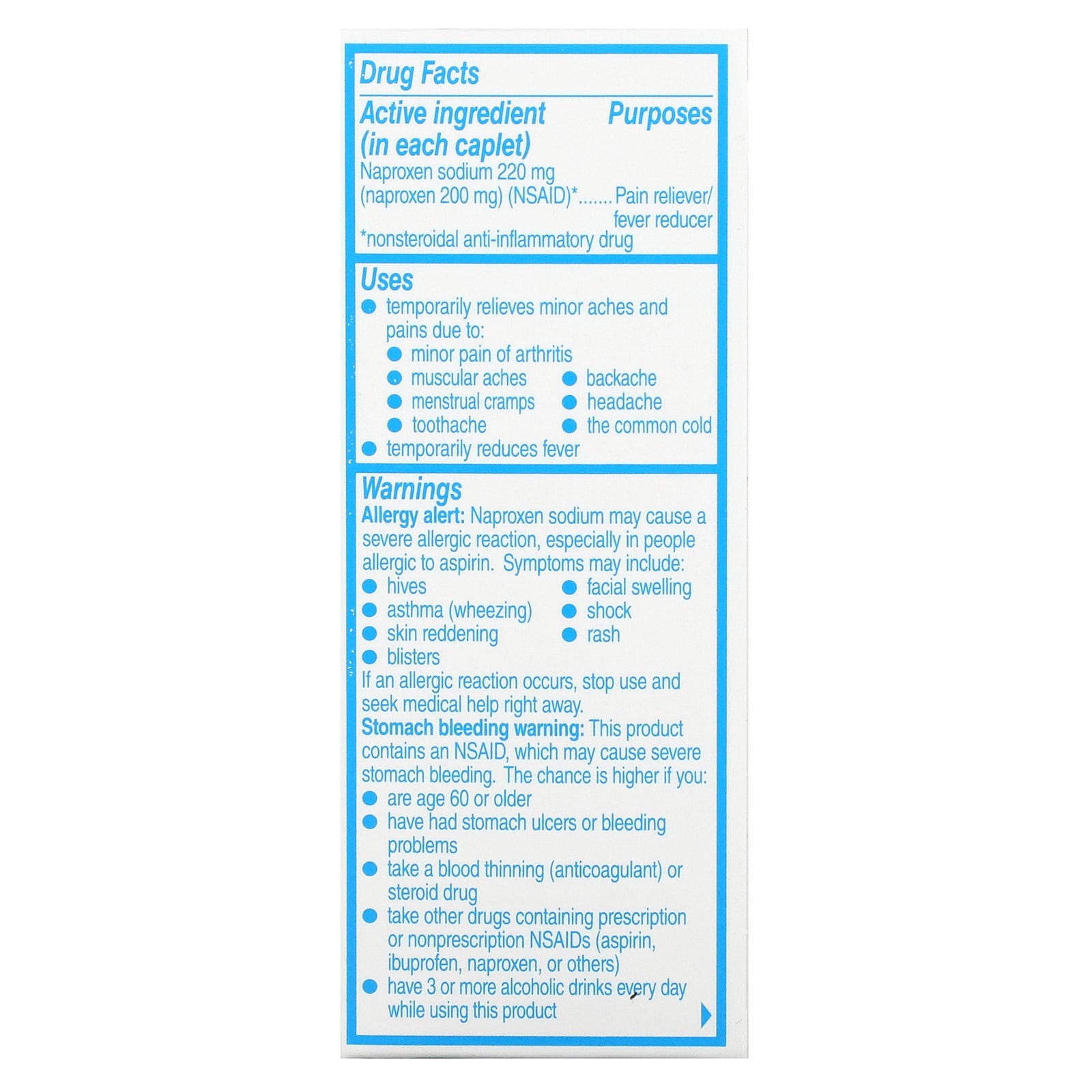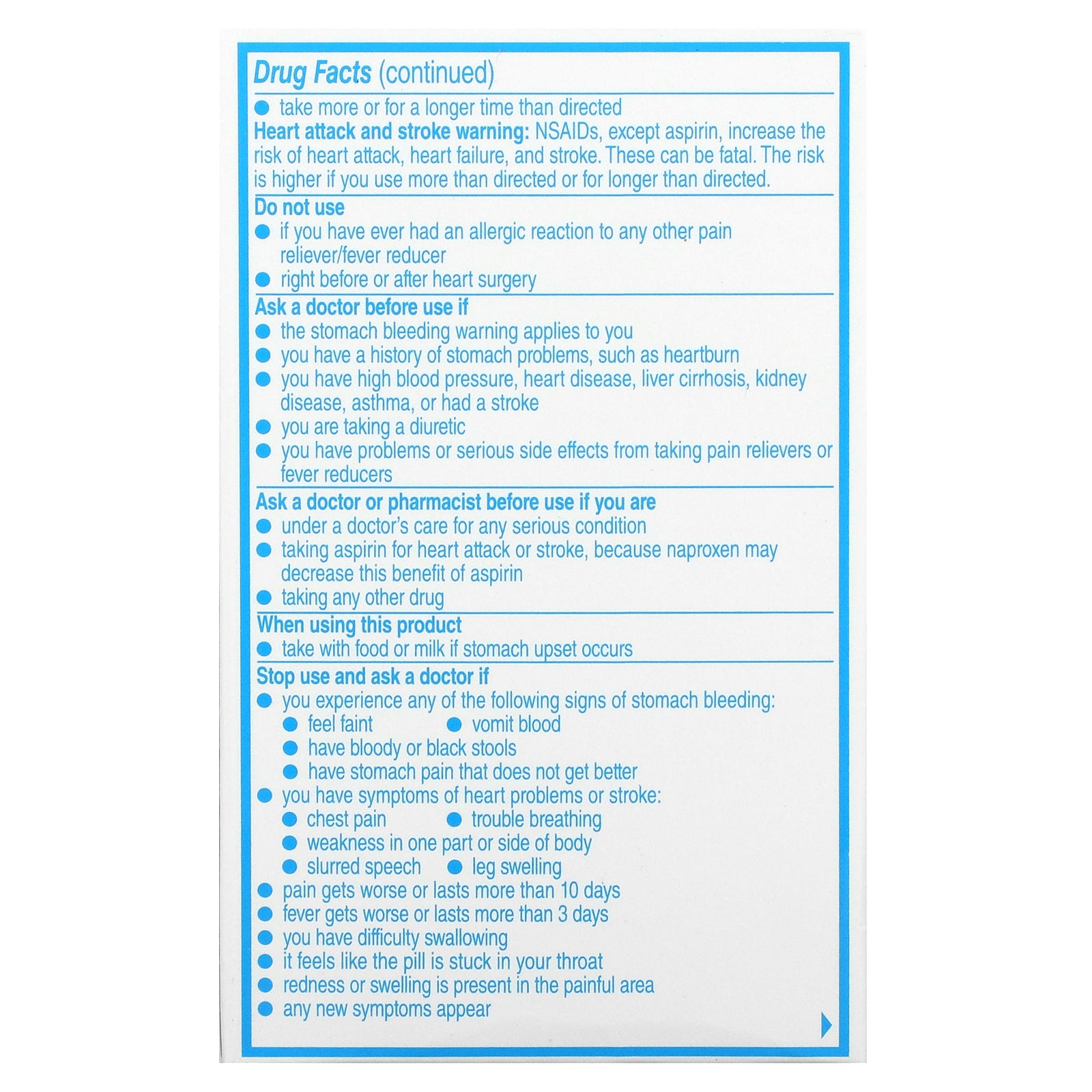 | Naproxen sodium 220 mg (naproxen 200 mg) (NSAID)* | Pain reliever/fever reducer |