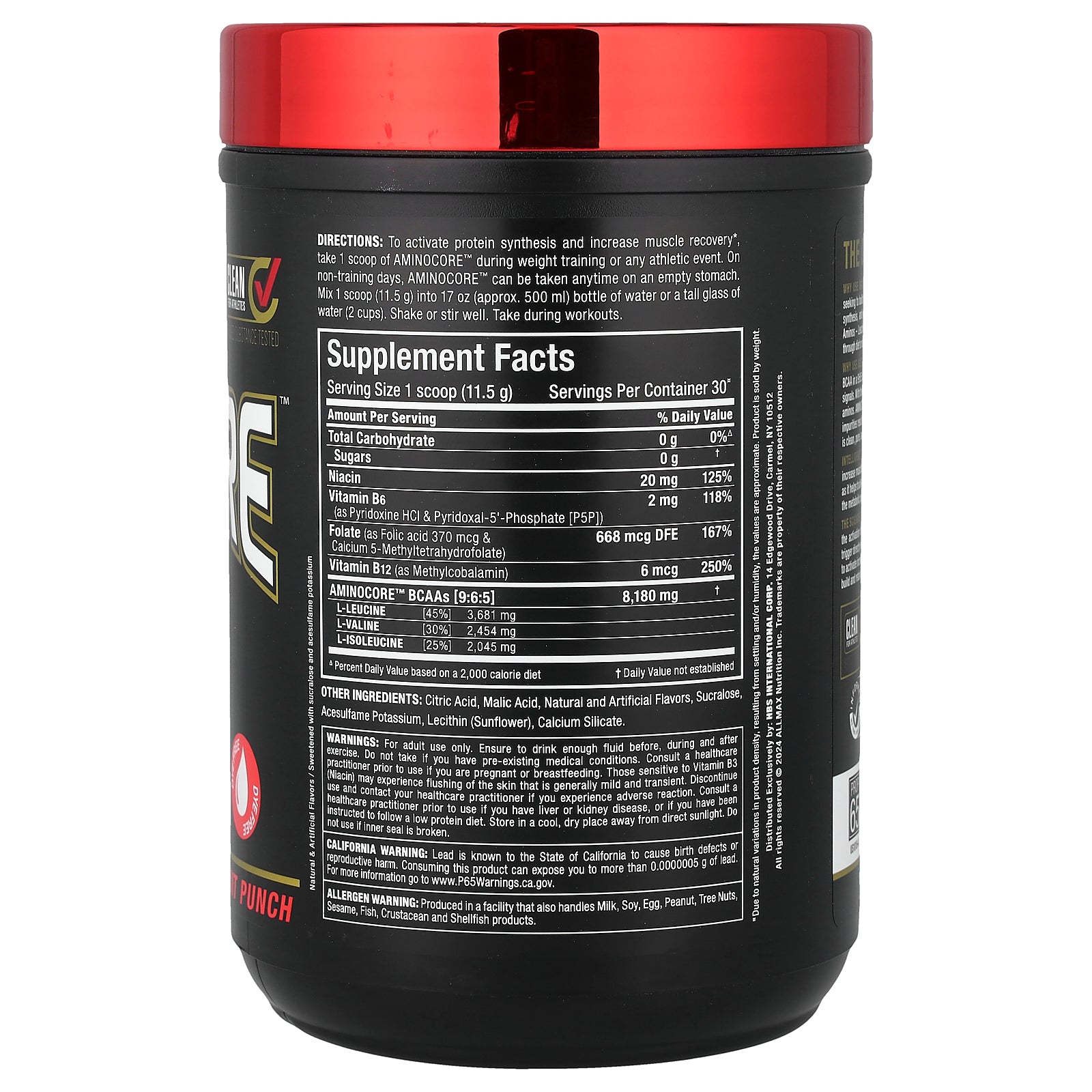 Why Use Allmax Aminocore? Not all BCAA are created equal. Aminocore delivers 8.18 g of BCAA in a 9:6:5 ratio clinically proven to provide a 350% increase in activation of muscle growth signals! The purest, free-form source of BCAA, Aminocore has no added fillers or non-BCAA aminos. Aminocore's 9:6:5 BCAAs are 100% pure prior to flavoring. Typical 2:1:1 sources contain impurities resulting in cloudiness, oily foam, sediment, and the worst - a harsh bitter taste! Aminocore is the cleanest, purest, best-tasting BCAA supplement money can buy!