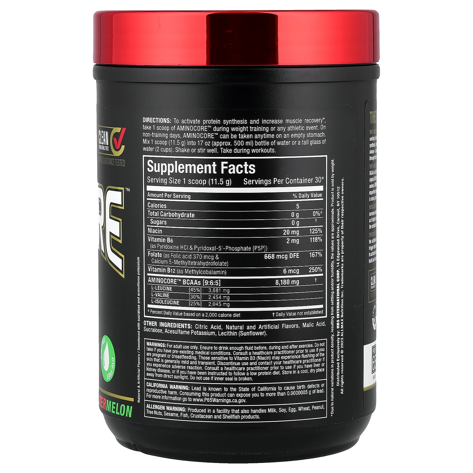 Why Use ALLMAX AMINOCORE? - Not all BCAA are created equal. AMINOCORE delivers 8.18 g of BCAA in a 9:6:5 clinically proven ratio to provide a 350% increase in the activation of muscle growth signals. With the use of pure, free form source of BCAA, AMINOCORE has no added fillers or non-BCAA aminos. AMINOCORE's 9:6:5 BCAAs are purified and tested prior to flavoring so they do not contain impurities resulting in cloudiness, oil foam, sediment, and the worst - a hard bitter taste! Aminocore is clean, pure, and the best-tasting BCAA supplement money can buy!