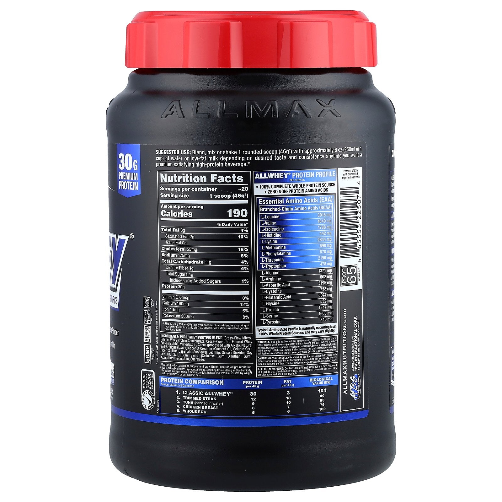 Classic AllWhey® is a premium Whey Protein Concentrate blended with Whey Protein Isolate delivering 30 g Protein in a 46 g serving; tested and guaranteed! AllWhey delivers a clean, complete and whole protein made from the best source; 100% Whey Protein!