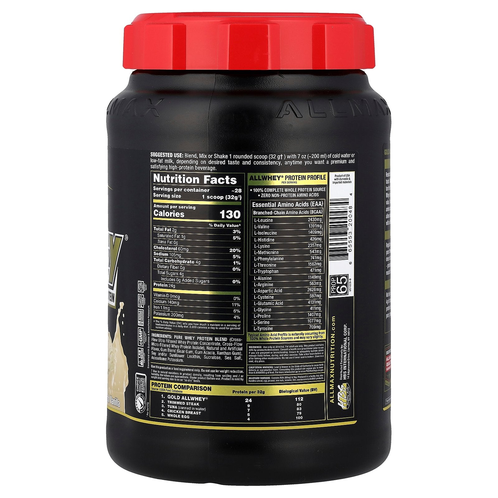 Not only does Gold AllWhey® deliver all the protein you need, each scoop contains only 4 g of carbs and 130 calories per serving. That's 70% less carbs and sugars vs regular whey protein powders! Get all the gains in lean mass without the added carbs. Gold AllWhey®: pure, premium, un-denatured whey protein.