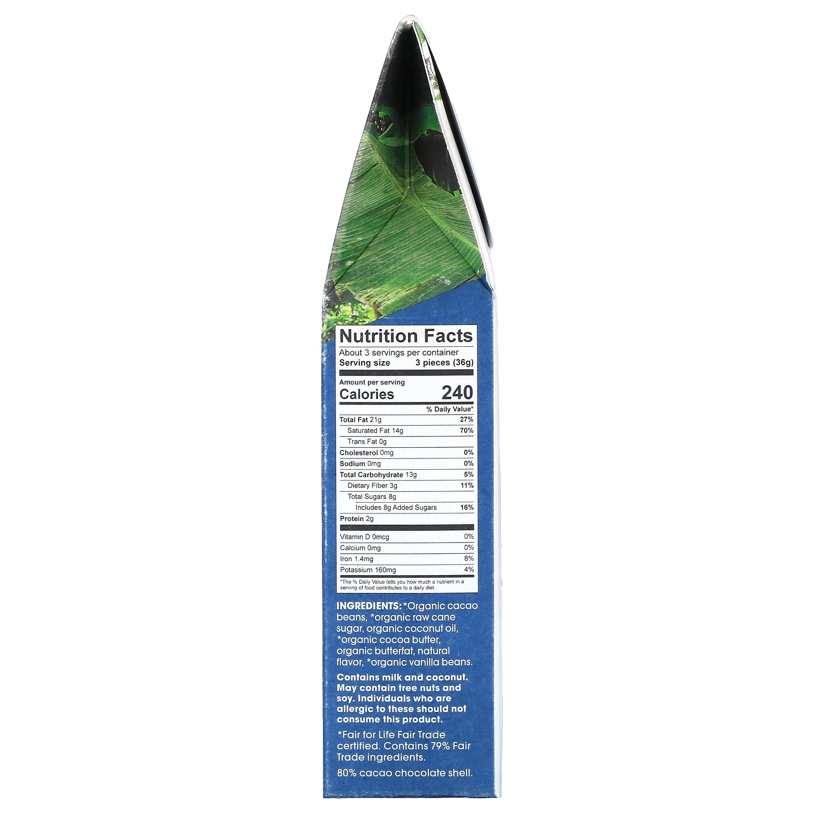 *Organic cacao beans, *organic raw cane sugar, organic coconut oil, *organic cocoa butter, organic butterfat, natural flavor, *organic vanilla beans.