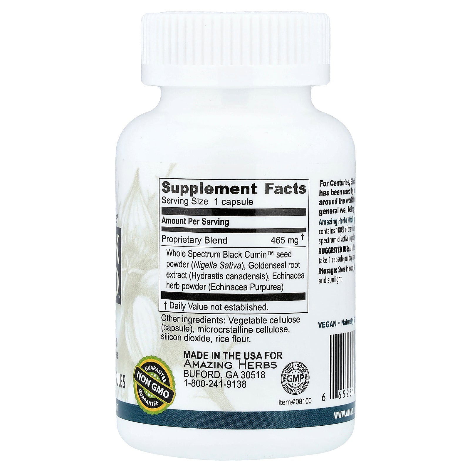 Amazing Herbs Whole Spectrum Black Cumin™ contains 100% of the whole herb, providing a complete spectrum of active ingredients & constituents.