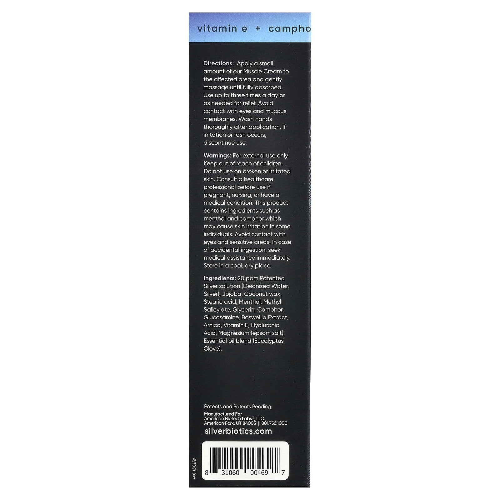 20 ppm patented silver solution (deionized water, silver), jojoba, coconut wax, stearic acid, menthol, methyl salicylate, glycerin, camphor, glucosamine, boswellia extract, arnica, vitamin e, hyaluronic acid, magnesium (epsom salt), essential oil blend (eucalyptus clove).