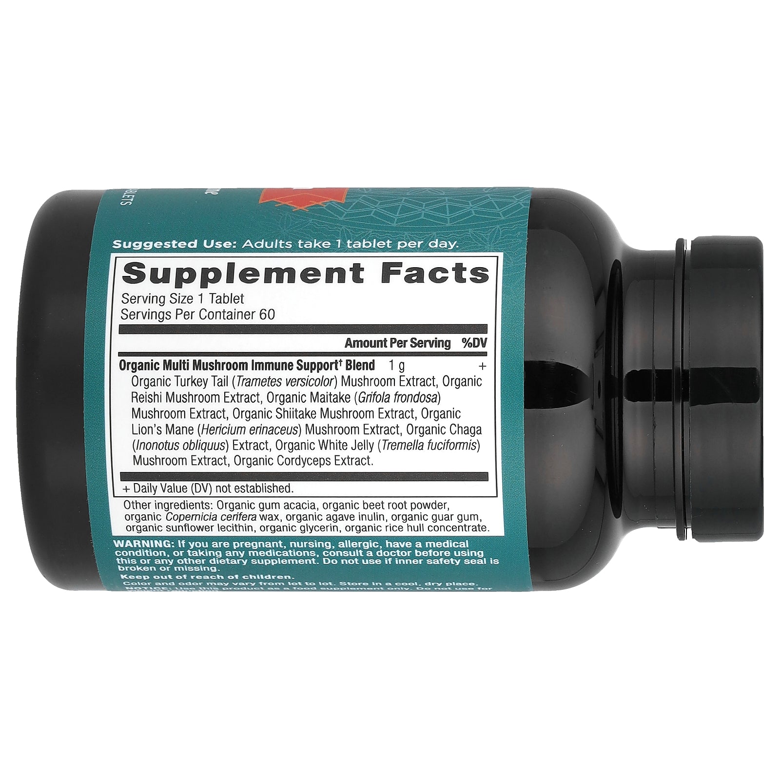 Organic Multi Mushroom Immune Support Blend Organic Turkey Tail (Trametes versicolor) Mushroom Extract, Organic Reishi Mushroom Extract, Organic Maitake (Grifola frondosa) Mushroom Extract, Organic Shiitake Mushroom Extract, Organic Lion´s Mane (Hericium erinaceus) Mushroom Extract, Organic Chaga (Inonotus obliquus) Extract, Organic White Jelly (Tremella fuciformis) Mushroom Extract, Organic Cordyceps Extract. |