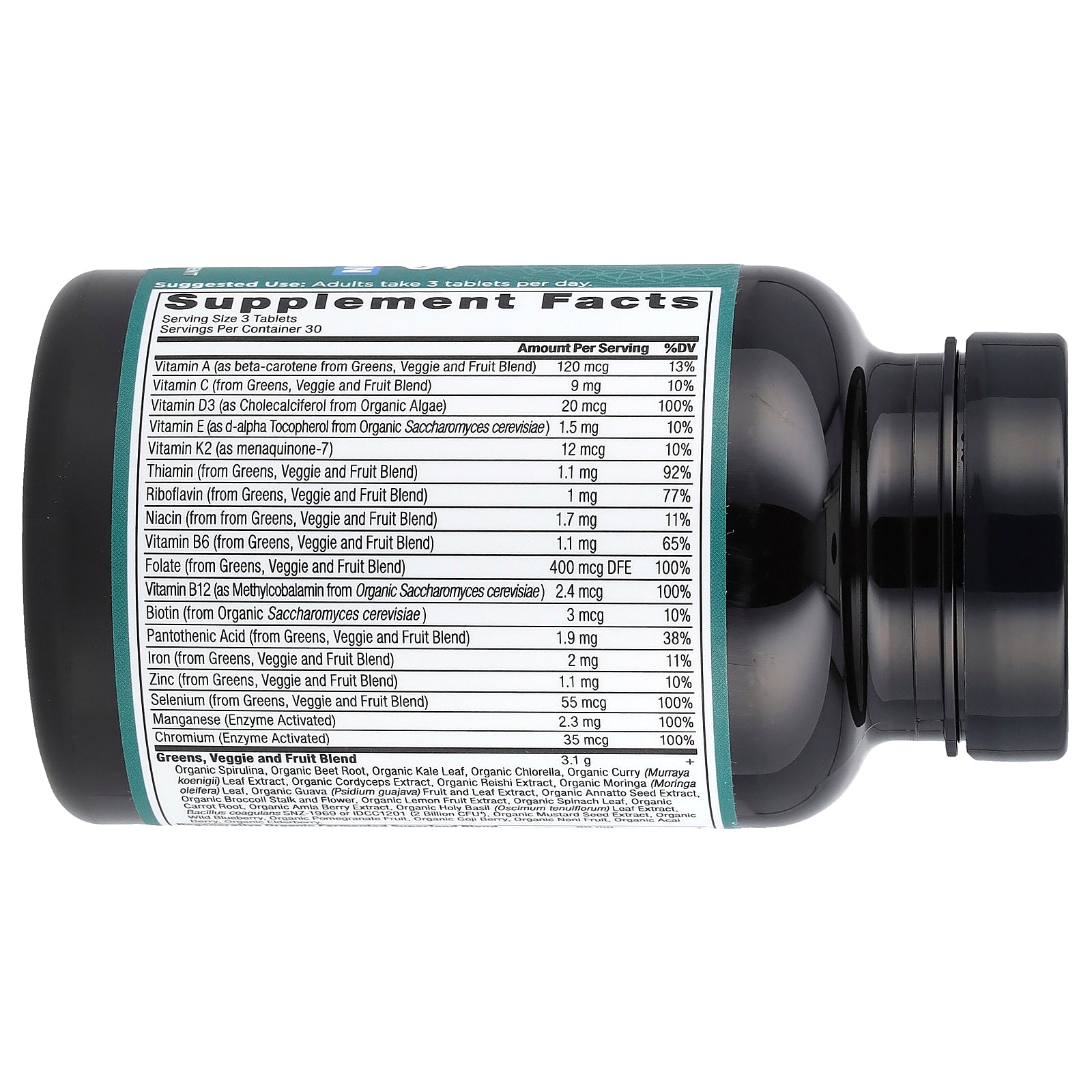 In addition to the 25+ organic superfoods (plus probiotics) found in many of our other Organic SuperGreens tablets, this blend features select ingredients to set the foundation for your overall health, including these key vitamins that provide 100% daily value: