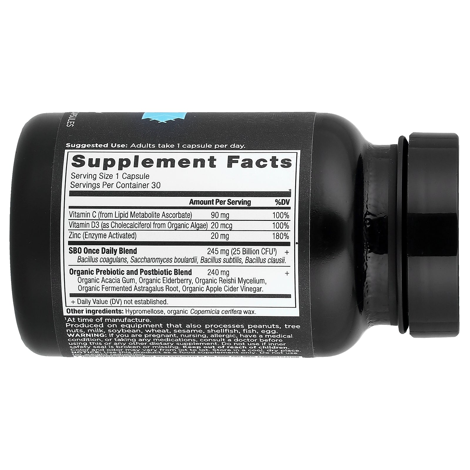 SBO Once Daily Blend Bacillus coagulans, Saccharomyces boulardii, Bacillus subtilis, Bacillus clausii. |