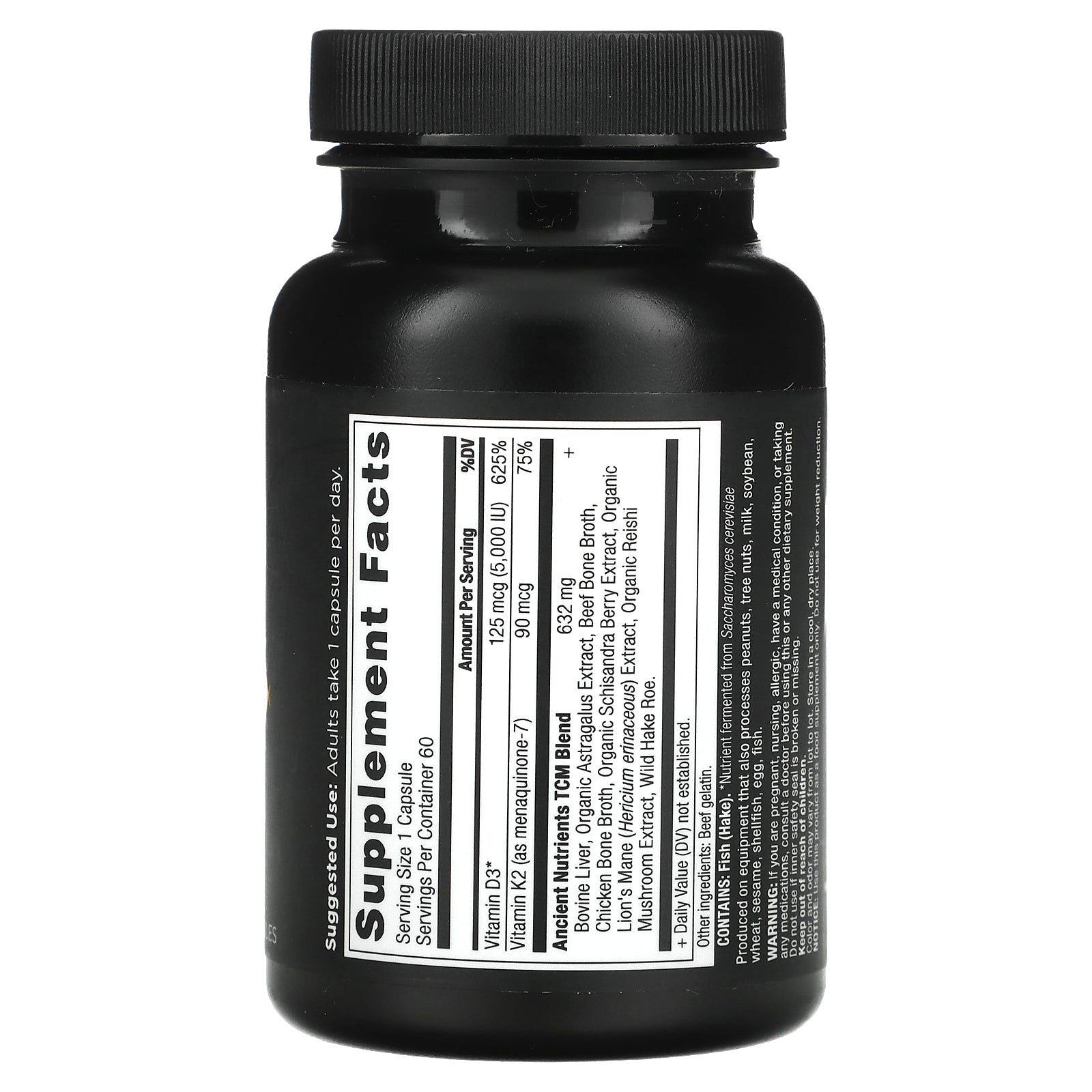 Ancient Nutrients TCM Blend Bovine Liver, Organic Astragalus Extract, Beef Bone Broth, Chicken Bone Broth, Organic Schisandra Berry Extract, Organic Lion's Mane (Hericium erinaceous) Extract, Organic Reishi Mushroom Extract, Wild Hake Roe. |