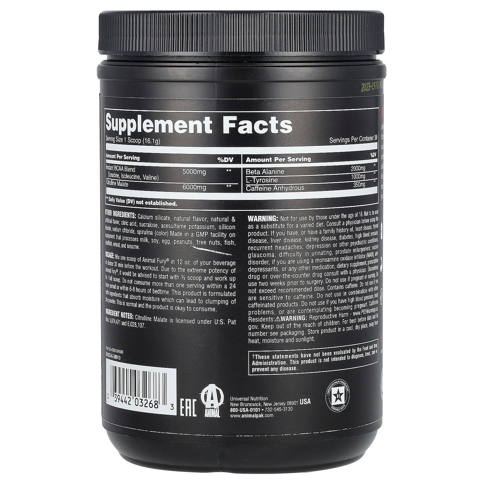 Animal Fury® is the ultimate pre-workout for those who want to surpass fitness goals and unlock true potential. It's meticulously designed to boost energy and focus and deliver powerful performance and pumps like never before. Each scoop helps you stay driven and determined throughout your entire workout.
