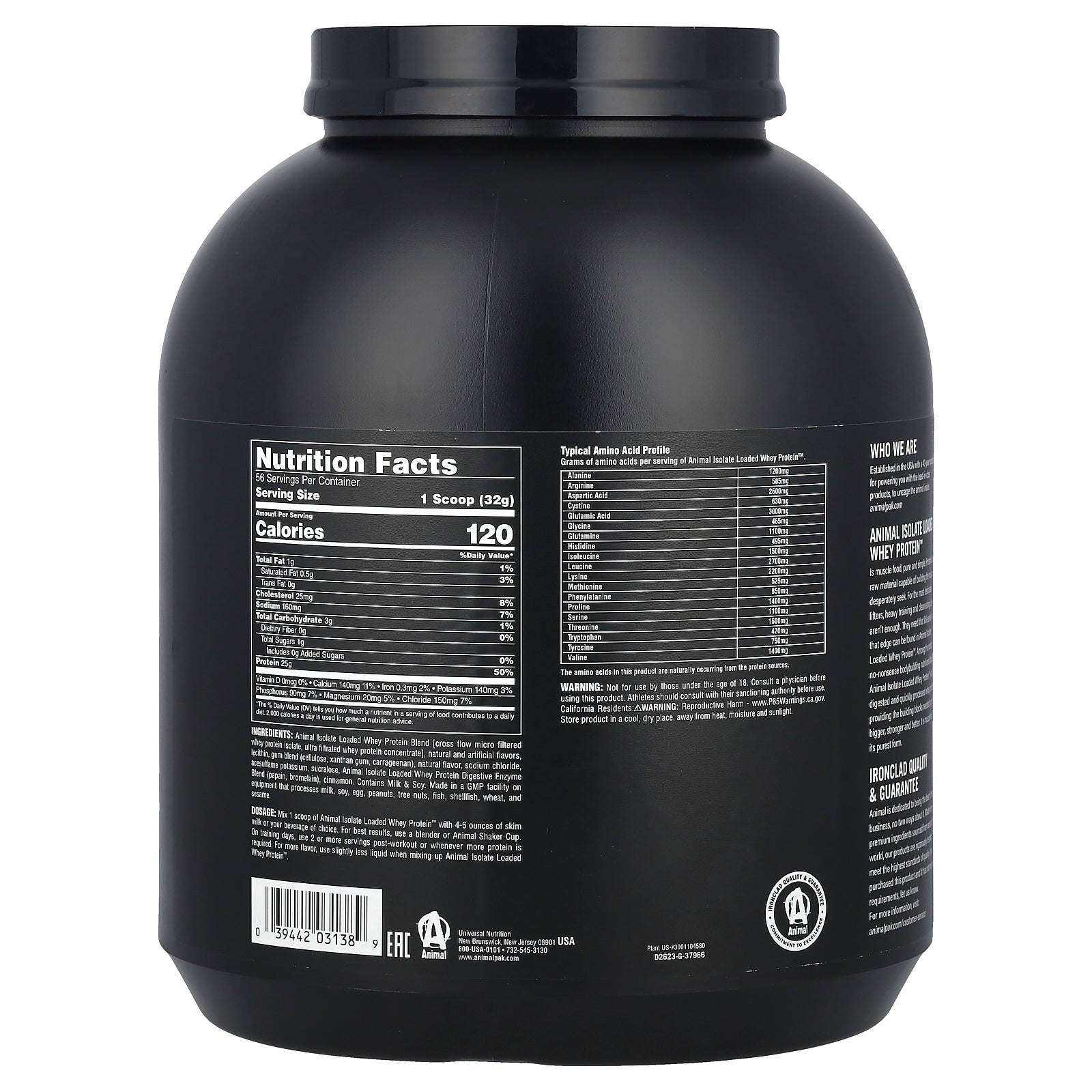 Is muscle food, pure and simple. Protein is the raw material capable of building the mass you desperately seek. For the most dedicated lifters, heavy training and clean eating just aren't enough. They need that little extra. And that edge can be found in Animal Isolate Loaded Whey Protein™. Among the most basic, no-nonsense bodybuilding nutritional staples, Animal Isolate Loaded Whey Protein™ is easily digested and quickly processed whey protein, providing the building blocks needed to grow bigger, stronger and better. It is muscle food, in its purest form.
