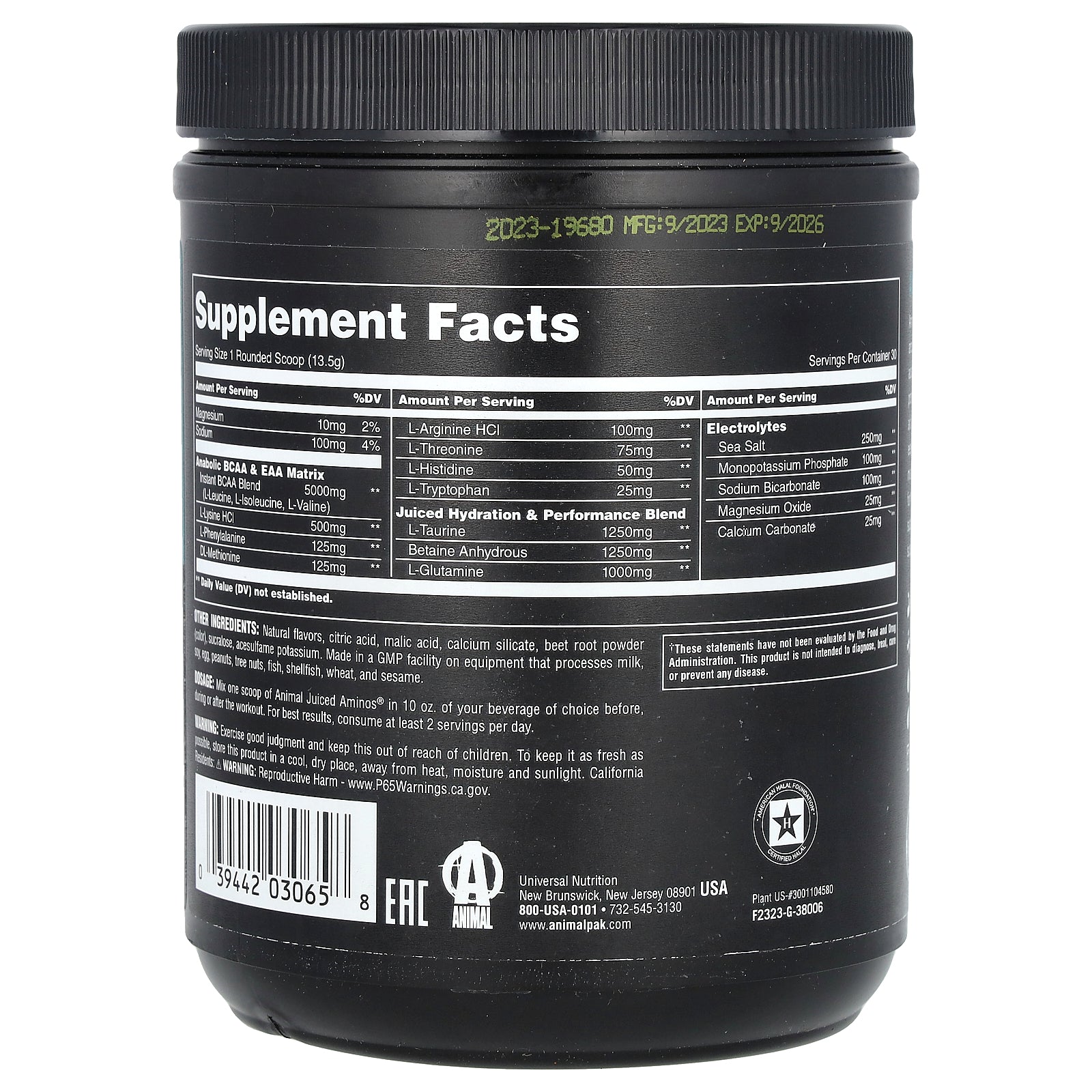 Mix one scoop of Animal Juiced Aminos® in 10 oz. of your beverage of choice before, during or after the workout. For best results, consume at least 2 servings per day.