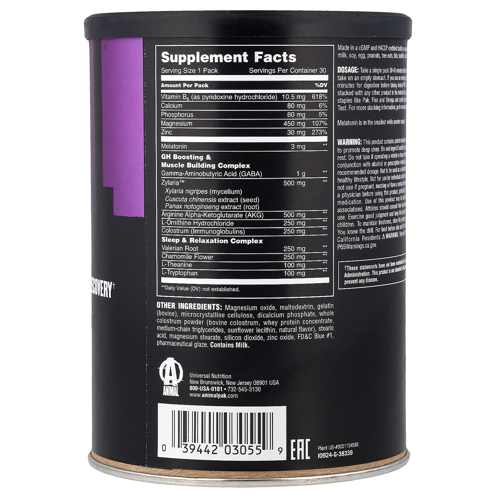 Take a single pack 30-45 minutes before bed. For best results, take on an empty stomach. If you use an evening protein shake allow 30 minutes for digestion before taking Animal PM®. Animal PM® can be stacked with any other product in the Animal line, including foundational staples like Pak, Flex and Omega and cycled products such as Stak or Test.