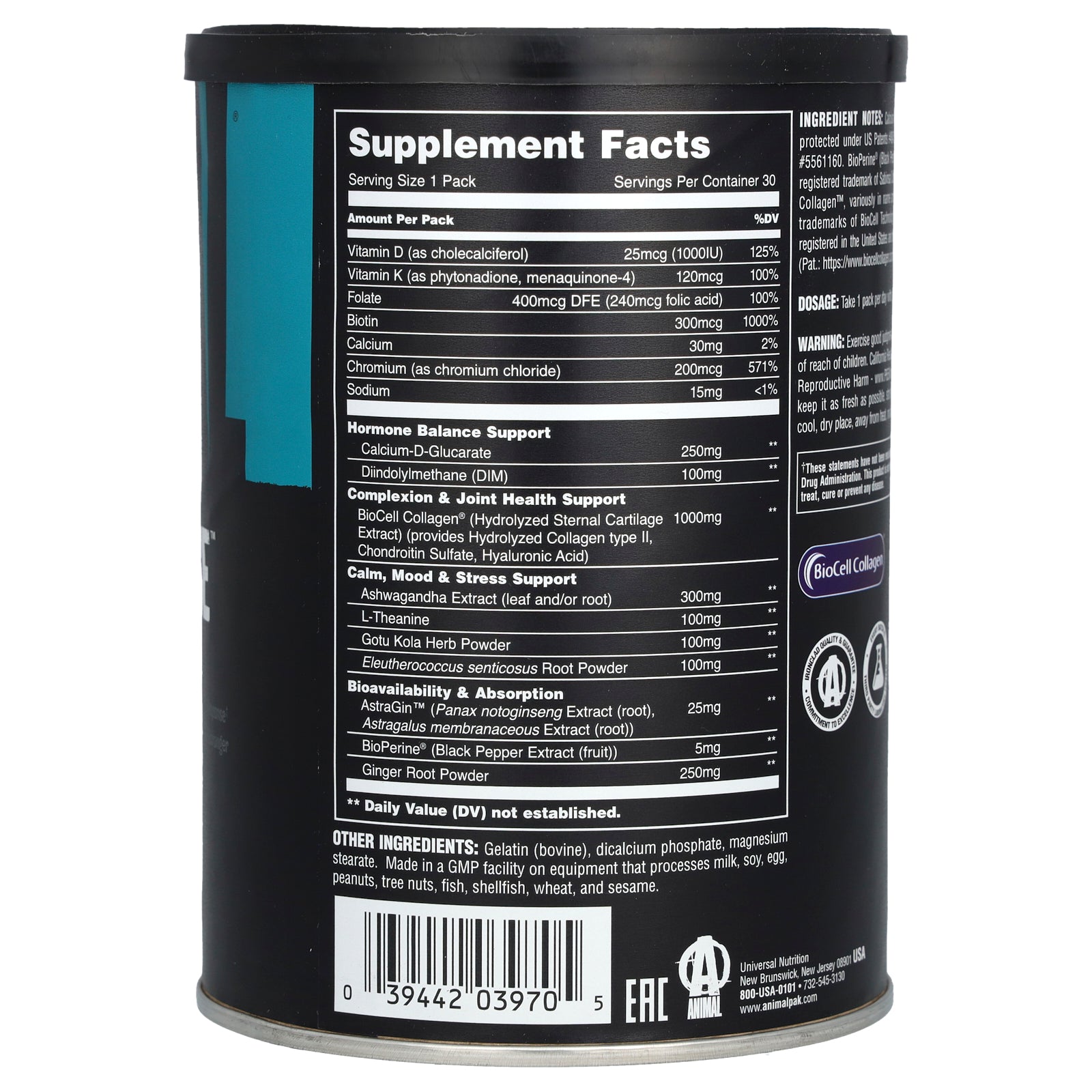 Animal Power Balance™ is a specialized supplement tailored to meed the unique health and fitness requirements of female athletes. Each convenient pill pack contains a comprehensive blend of nutrients carefully formulated to support female hormone balance, promoting improved mood and stress reduction. The inclusion of patented BioCell Collagen® works to nourish the skin, enhancing complexion and supporting joint health. Micronutrients provide vital support for healthy hair, nails, and bones. Animal recognizes that body and health support is not a one size fits all. Animal Power Balance™ is designed to empower women in achieving a healthier body, both inside and outside the gym.