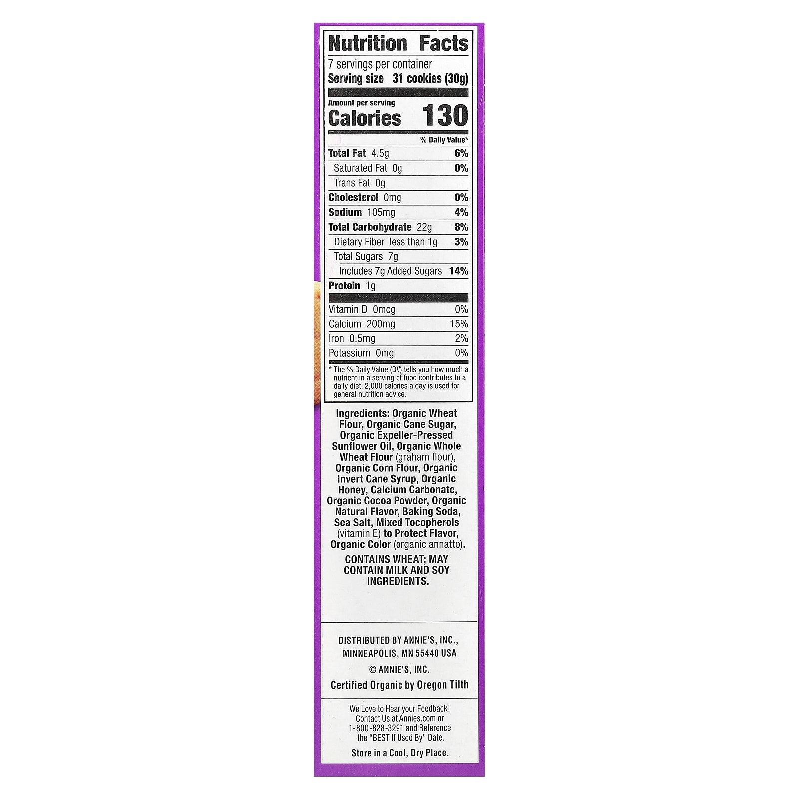 Organic wheat flour, organic cane sugar, organic expeller-pressed sunflower oil, organic whole wheat flour (graham flour), organic corn flour, organic invert cane syrup, organic honey, calcium carbonate, organic cocoa powder, organic natural flavor, baking soda, sea salt, mixed tocopherols (vitamin e) to protect flavor, organic color (organic annatto).
