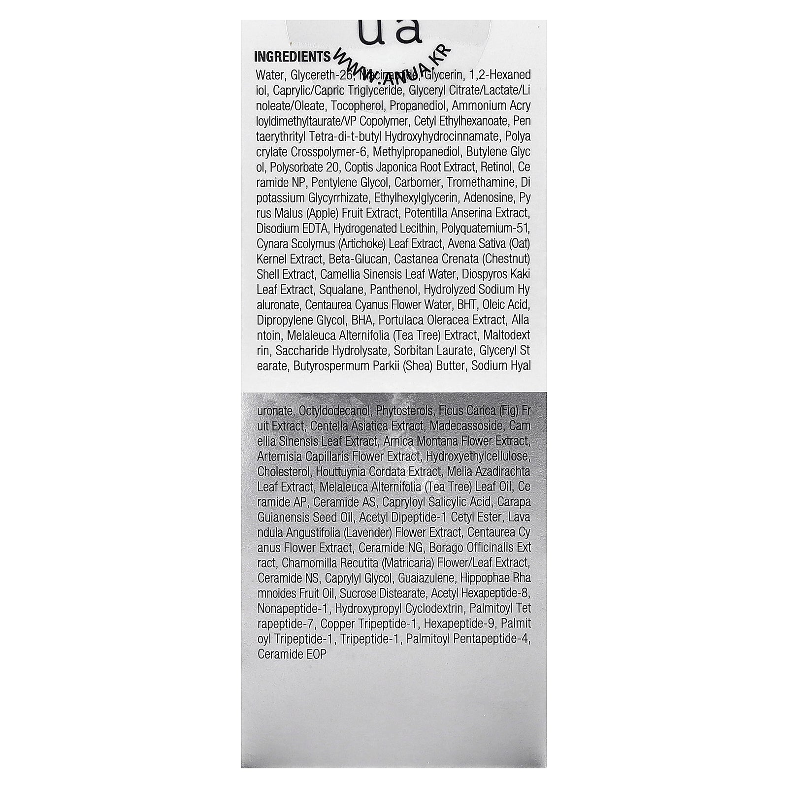 Water, glycereth-26, niacinamide, glycerin, 1,2-hexanediol, caprylic/capric triglyceride, glyceryl citrate/lactate/linoleate/oleate, tocopherol, propanediol, ammonium acryloyldimethyltaurate/vp copolymer, cetyl ethylhexanoate, pentaerythrityl tetra-di-t-butyl hydroxyhydrocinnamate, polyacrylate crosspolymer-6, methylpropanediol, butylene glycol, polysorbate 20, coptis japonica root extract, retinol, ceramide np, pentylene glycol, carbomer, tromethamine, dipotassium glycyrrhizate, ethylhexylglycerin, adenosine, pyrus malus (apple) fruit extract, potentilla anserina extract, disodium edta, hydrogenated lecithin, polyquaternium-51, cynara scolymus (artichoke) leaf extract, avena sativa (oat) kernel extract, beta-glucan, castanea crenata (chestnut) shell extract, camellia sinensis leaf water, diospyros kaki leaf extract, squalane, panthenol, hydrolyzed sodium hyaluronate, centaurea cyanus flower water, bht, oleic acid, dipropylene glycol, bha, portulaca oleracea extract, allantoin, melaleuca alternifolia (tea tree) extract, maltodextrin, saccharide hydrolysate, sorbitan laurate, glyceryl stearate, butyrospermum parkii (shea) butter, sodium hyaluronate, octyldodecanol, phytosterols, ficus carica (fig) fruit extract, centella asiatica extract, madecassoside, camellia sinensis leaf extract, arnica montana flower extract, artemisia capillaris flower extract, hydroxyethylcellulose, cholesterol, houttuynia cordata extract, melia azadirachta leaf extract, melaleuca alternifolia (tea tree) leaf oil, ceramide ap, ceramide as, capryloyl salicylic acid, carapa guianensis seed oil, acetyl dipeptide-1 cetyl ester, lavandula angustifolia (lavender) flower extract, centaurea cyanus flower extract, ceramide ng, borago officinalis extract, chamomilla recutita (matricaria) flower/leaf extract, ceramide ns, caprylyl glycol, guaiazulene, hippophae rhamnoides fruit oil, sucrose distearate, acetyl hexapeptide-8, nonapeptide-1, hydroxypropyl cyclodextrin, palmitoyl tetrapeptide-7, copper tripeptide-1, hexapeptide-9, palmitoyl tripeptide-1, tripeptide-1, palmitoyl pentapeptide-4, ceramide EOP.