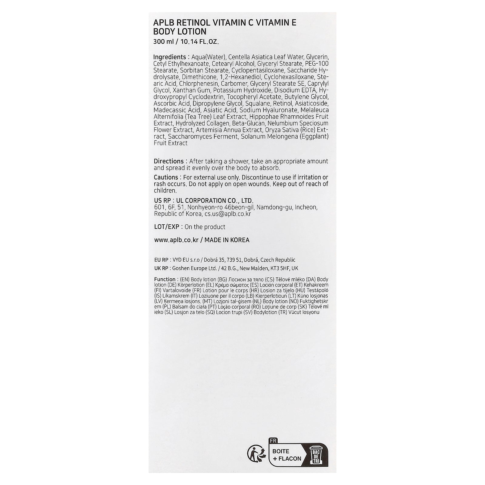 - Retinol, Vitamin C, Vitamin E, Centella Asiatica Leaf Water