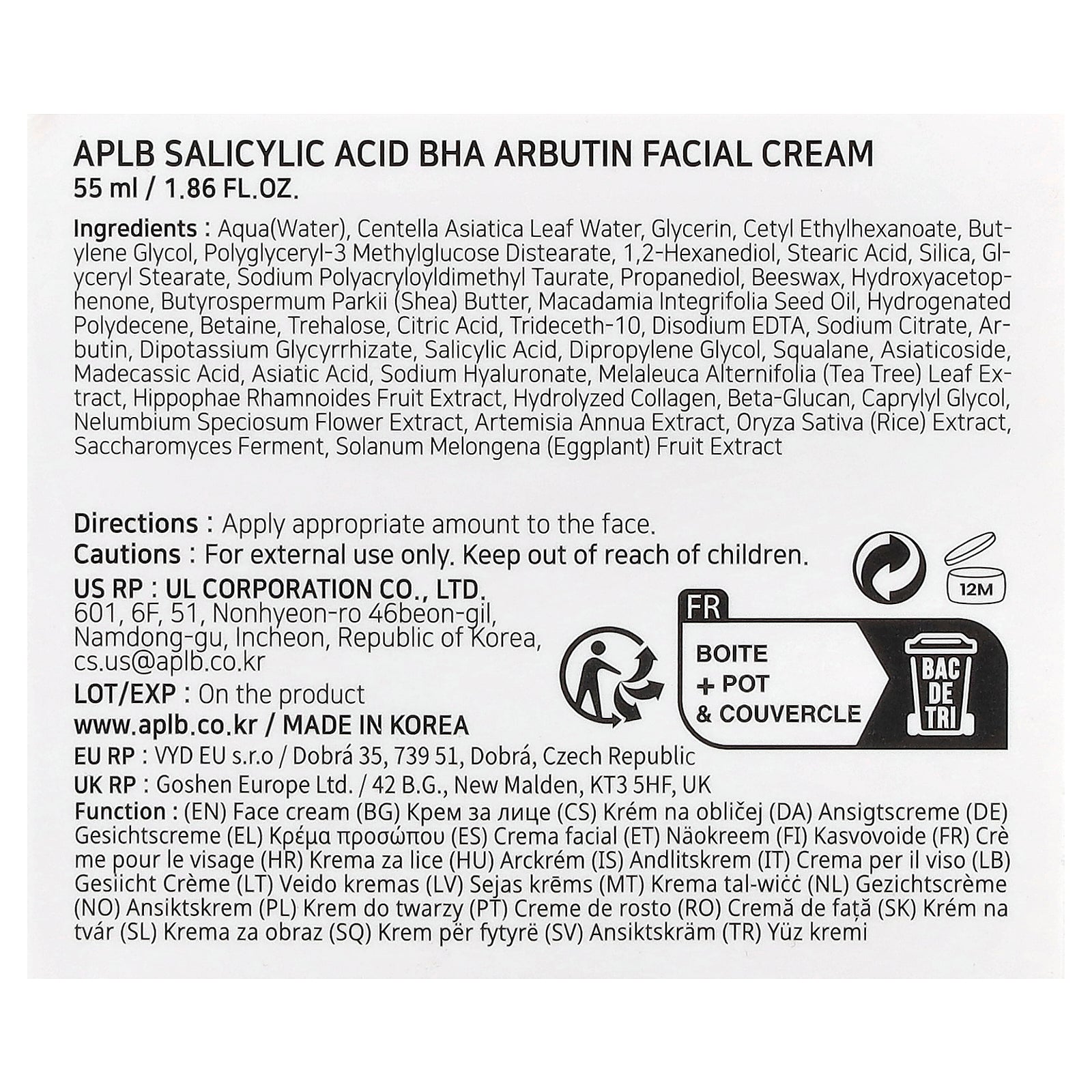 Water, centella asiatica leaf water, glycerin, cetyl ethylhexanoate, butylene glycol, polyglyceryl-3 methylglucose distearate, 1,2-hexanediol, stearic acid, silica, glyceryl stearate, sodium polyacryloyldimethyl taurate, propanediol, beeswax, hydroxyacetophenone, butyrospermum parkii (shea) butter, macadamia integrifolia seed oil, hydrogenated polydecene, betaine, trehalose, citric acid, trideceth-10, disodium edta, sodium citrate, arbutin, dipotassium glycyrrhizate, salicylic acid, dipropylene glycol, squalane, asiaticoside, madecassic acid, asiatic acid, sodium hyaluronate, melaleuca alternifolia (tea tree) leaf extract, hippophae rhamnoides fruit extract, hydrolyzed collagen, beta-glucan, caprylyl glycol, nelumbium speciosum flower extract, artemisia annua extract, oryza sativa (rice) extract, saccharomyces ferment, solanum melongena (eggplant) fruit extract.