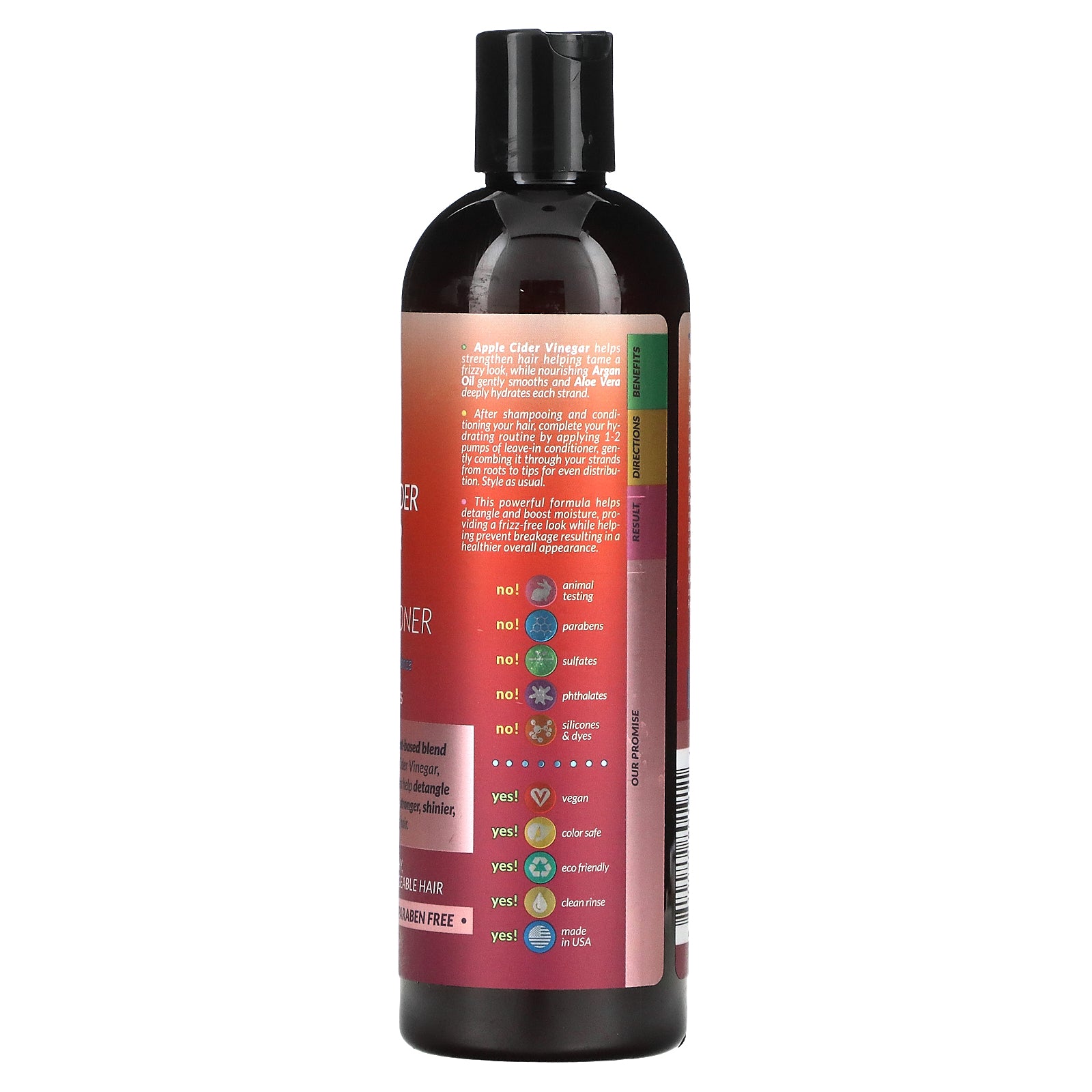 A deeply hydrating plant-based blend of nourishing Apple Cider Vinegar, Argan Oil, and Aloe Vera help detangle hair and tame frizz for stronger, shinier, and smoother looking hair.