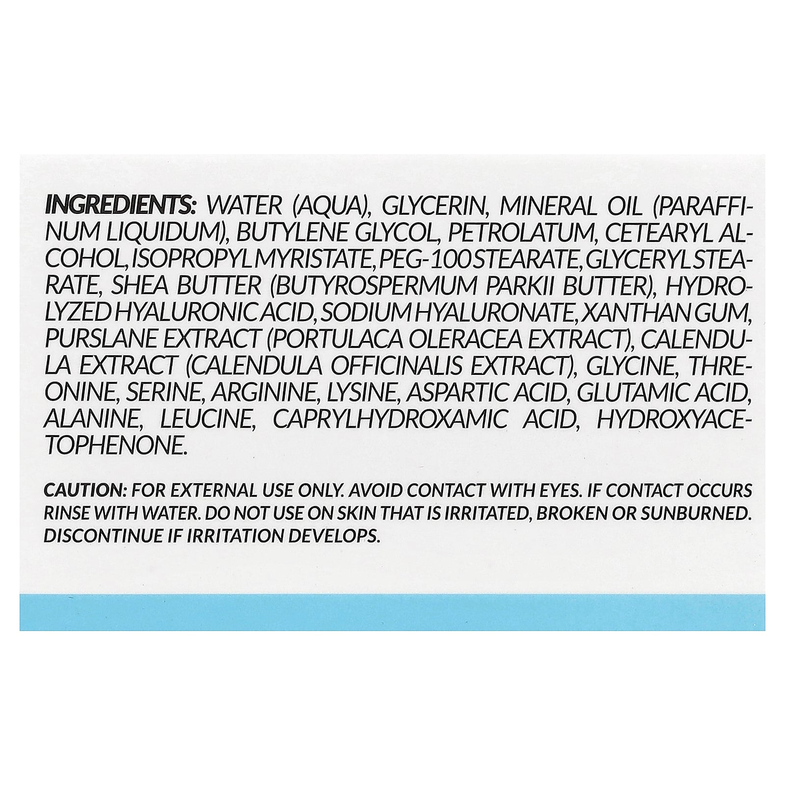 Water, glycerin, mineral oil (paraffinum liquidum), butylene glycol, petrolatum, cetearyl alcohol, isopropyl myristate, peg-100 stearate, glyceryl stearate, shea butter (butyrospermum parkii butter), hydrolyzed hyaluronicacid, sodium hyaluronate, xanthan gum, purslane extract (portulaca oleracea extract), calendula extract (calendula officinalis extract), glycine, threonine, serine, arginine, lysine, aspartic acid, glutamic acid, alanine, leucine, caprylhydroxamic acid, hydroxyacetophenone.
