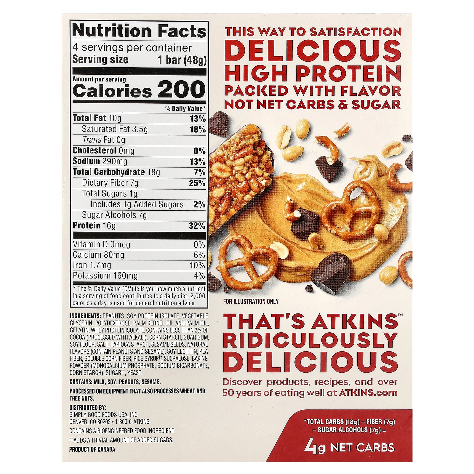 This way to satisfaction delicious High Protein packed with flavor not net carbs & sugar. That's Atkins™ ridiculously delicious.