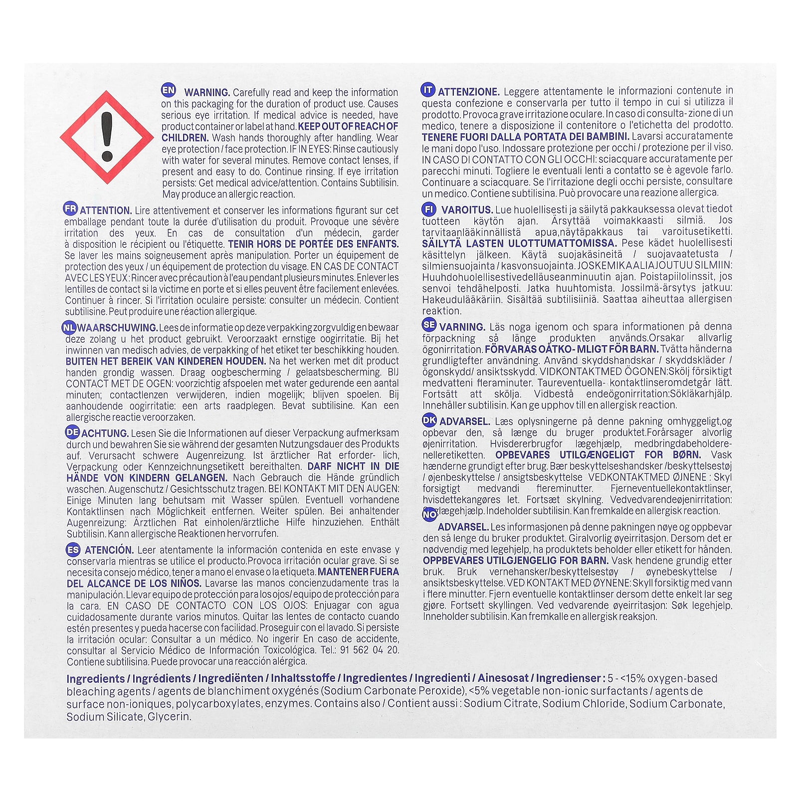 Carefully read and keep the information on this packaging for the duration of product use. Causes serious eye irritation. If medical advice is needed, have product container or label at hand. Keep out of reach of children. Wash hands thoroughly after handling. Wear eye protection / face protection. If in eyes: Rinse cautiously with water for several minutes. Remove contact lenses, if present and easy to do. Continue rinsing. If eye irritation persists: Get medical advice/attention. Contains Subtilisin. May produce an allergic reaction.