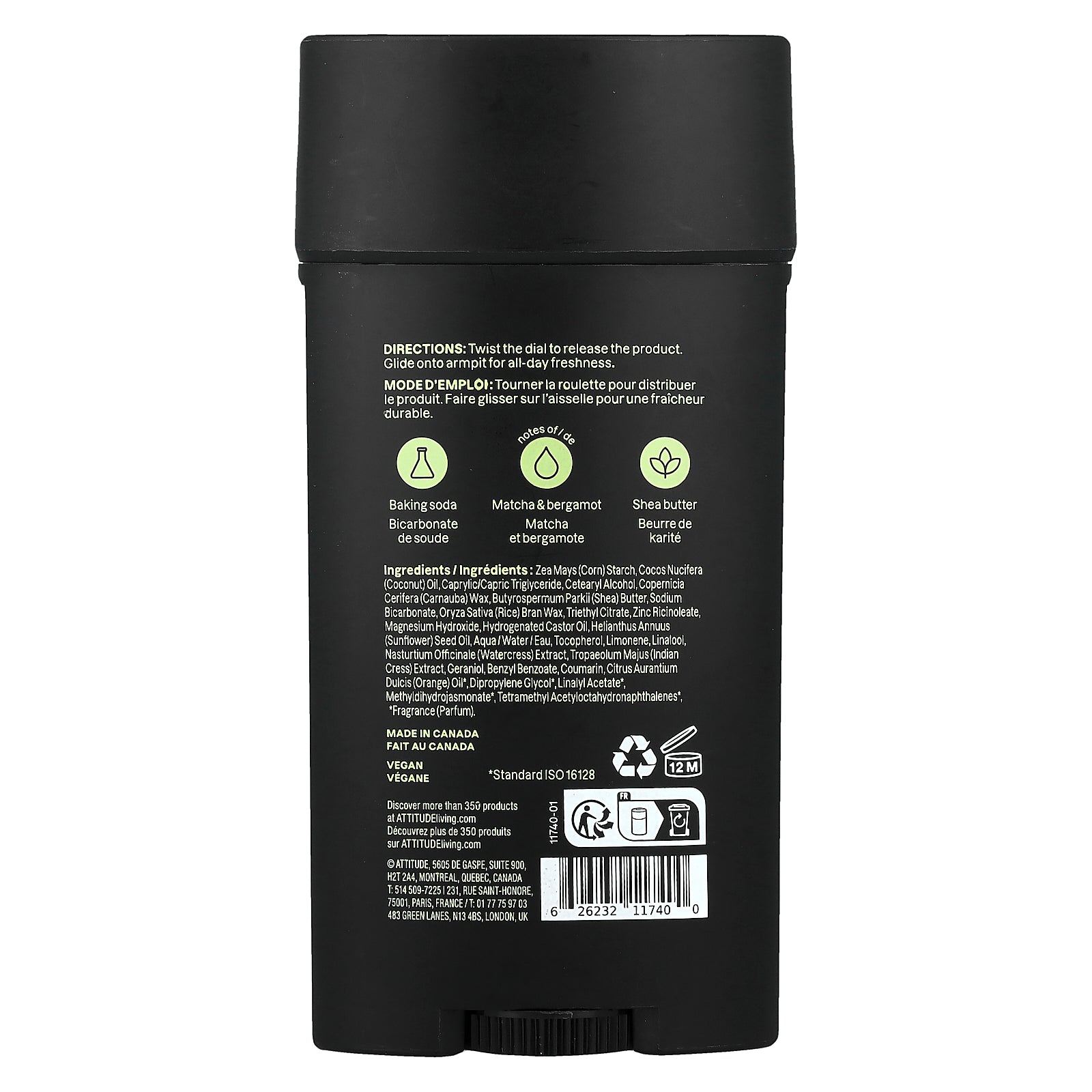 Zea mays (corn) starch, cocos nucifera (coconut) oil, caprylic/capric triglyceride, cetearyl alcohol, copernicia cerifera (carnauba) wax, butyrospermum parkii (shea) butter, sodium bicarbonate, oryza sativa (rice) bran wax, triethyl citrate, zinc ricinoleate, magnesium hydroxide, hydrogenated castor oil, helianthus annuus (sunflower) seed oil, aqua/water/eau, tocopherol, limonene, linalool, nasturtium officinale (watercress) extract, tropaeolum majus (indian cress) extract, geraniol, benzyl benzoate, coumarin, citrus aurantium dulcis (orange) oil*, dipropylene glycol*, linalyl acetate*, methyldihydrojasmonate*, tetramethyl acetyloctahydronaphthalenes*, *fragrance (parfum)