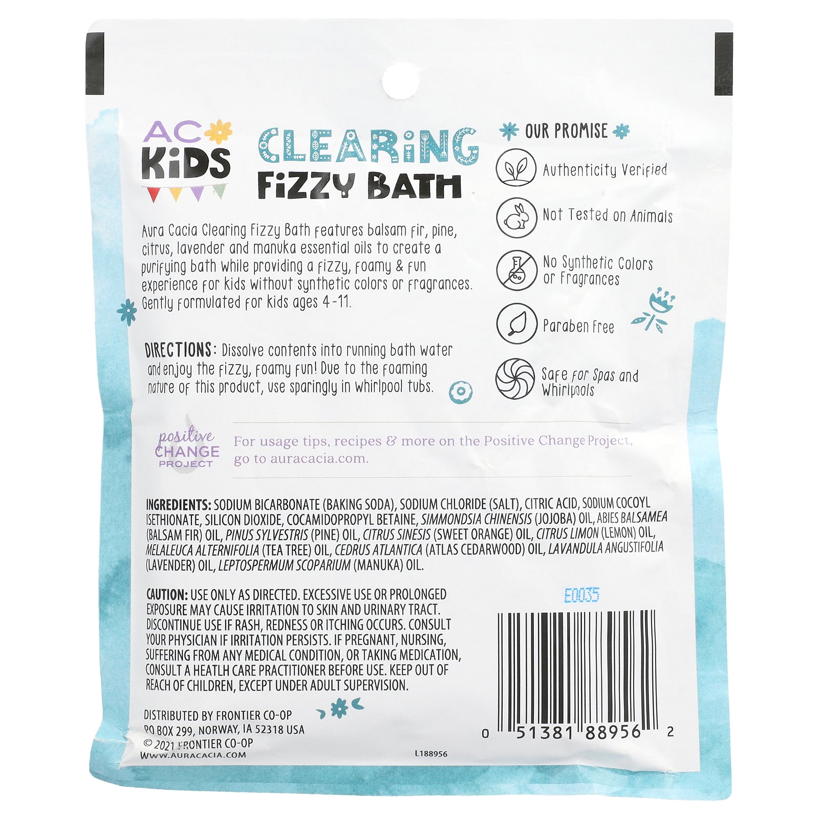 Aura Cacia Clearing Fizzy Bath features balsam fir, pine, citrus, lavender and manuka essential oils to create a purifying bath while providing a fizzy, foamy & fun experience for kids without synthetic colors or fragrances. Gently formulated for kids 4-11.