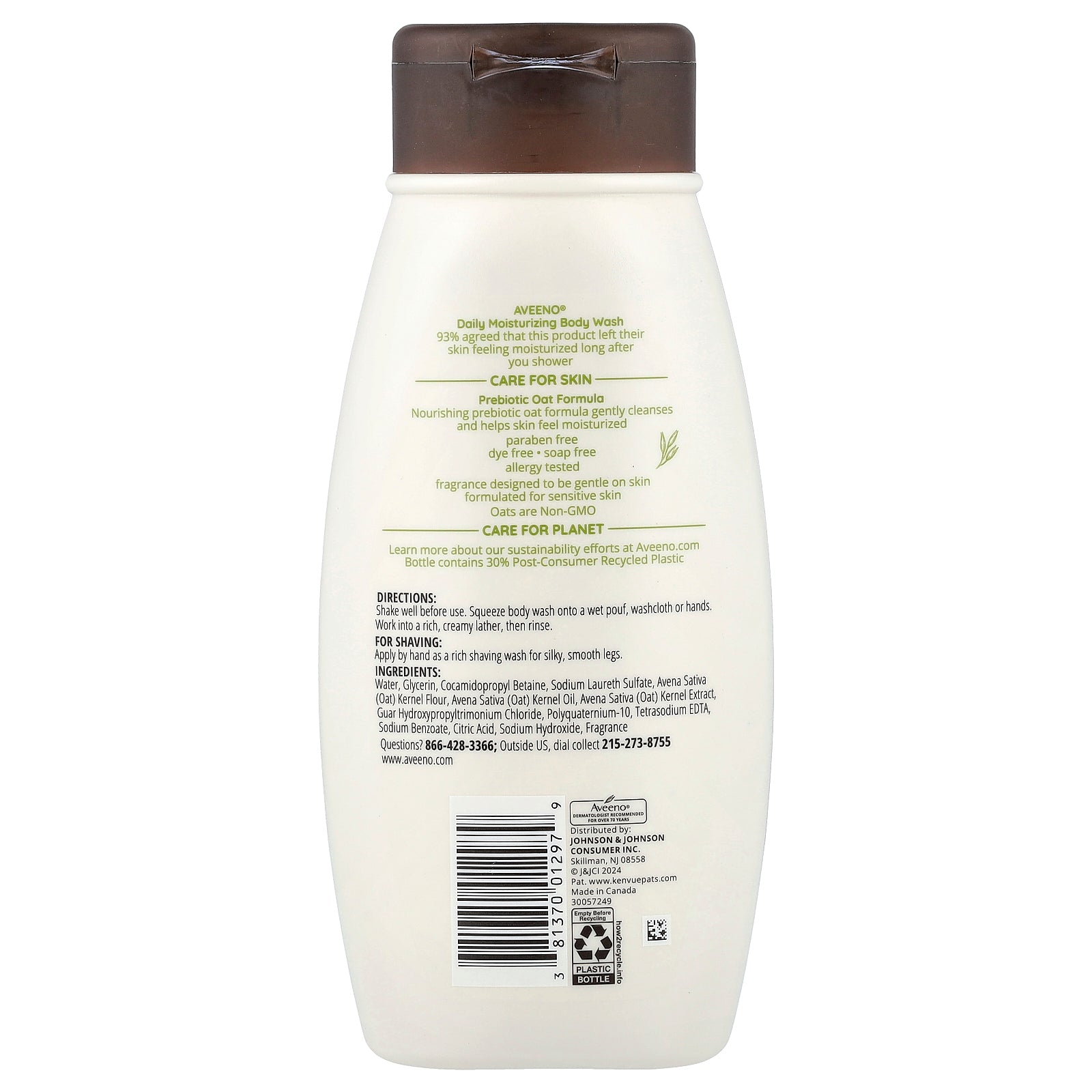Water, glycerin, cocamidopropyl betaine, sodium laureth sulfate, avena sativa (oat) kernel flour, avena sativa (oat) kernel oil, avena sativa (oat) kernel extract, guar hydroxypropyltrimonium chloride, polyquaternium-10, tetrasodium edta, sodium benzoate, citric acid, sodium hydroxide, fragrance.