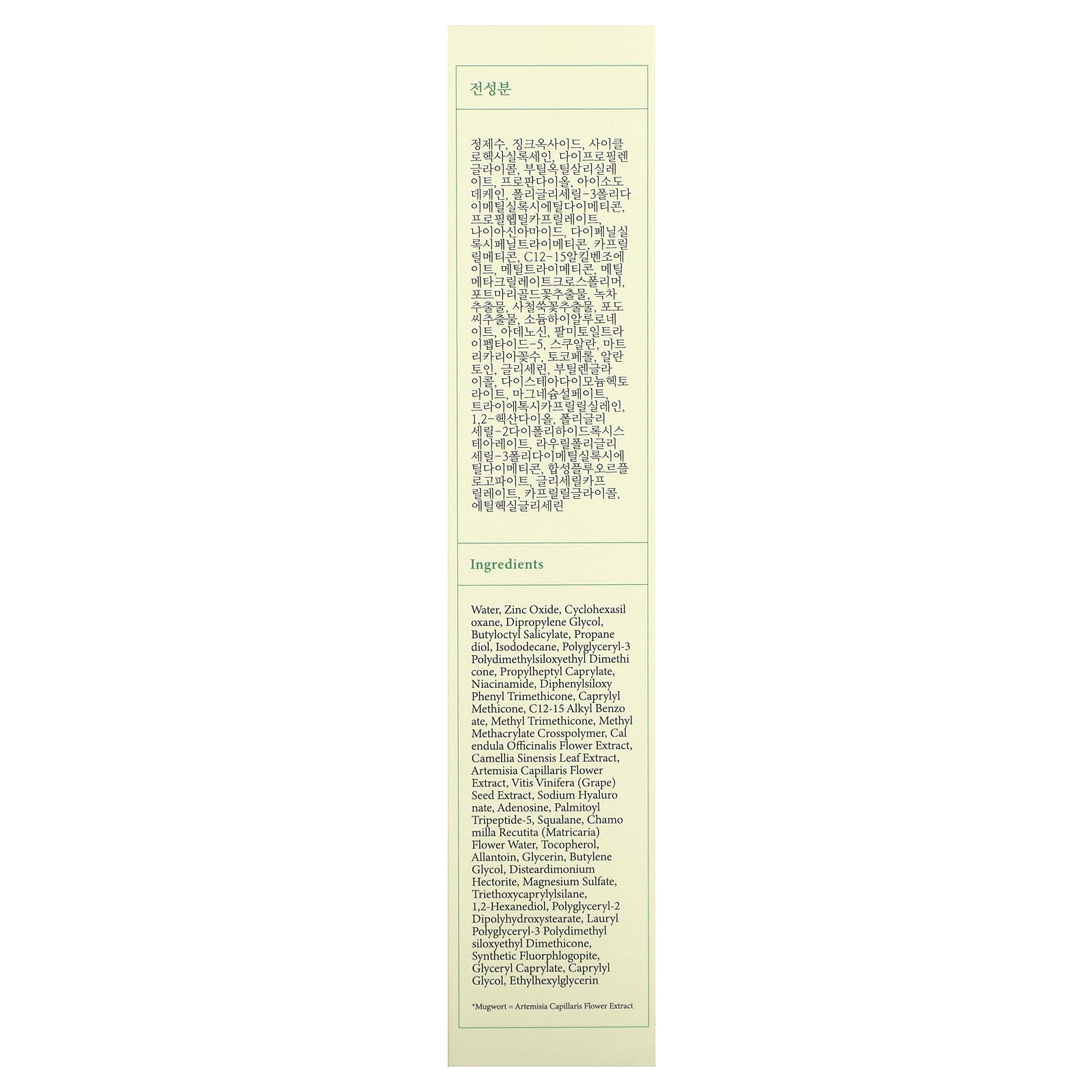 *Mugwort = Artemisia capillaris flower extract.