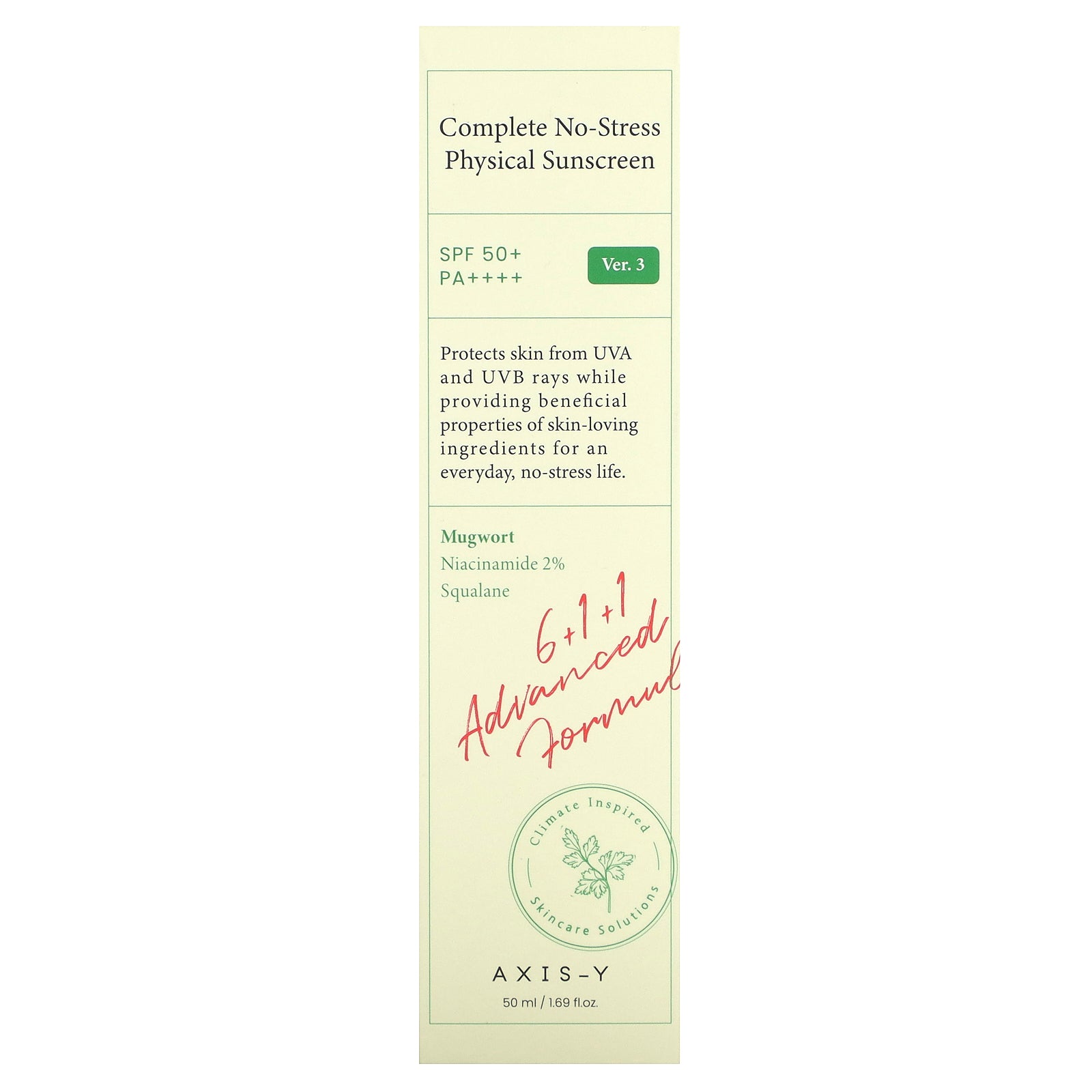 AXIS-Y Complete No-Stress Physical Sunscreen has a unique formulation containing six premium natural ingredients like calendula, green tea, squalene, grape, chamomile, and allantoin to soothe and calm your skin while providing lightweight and effective sun protection.