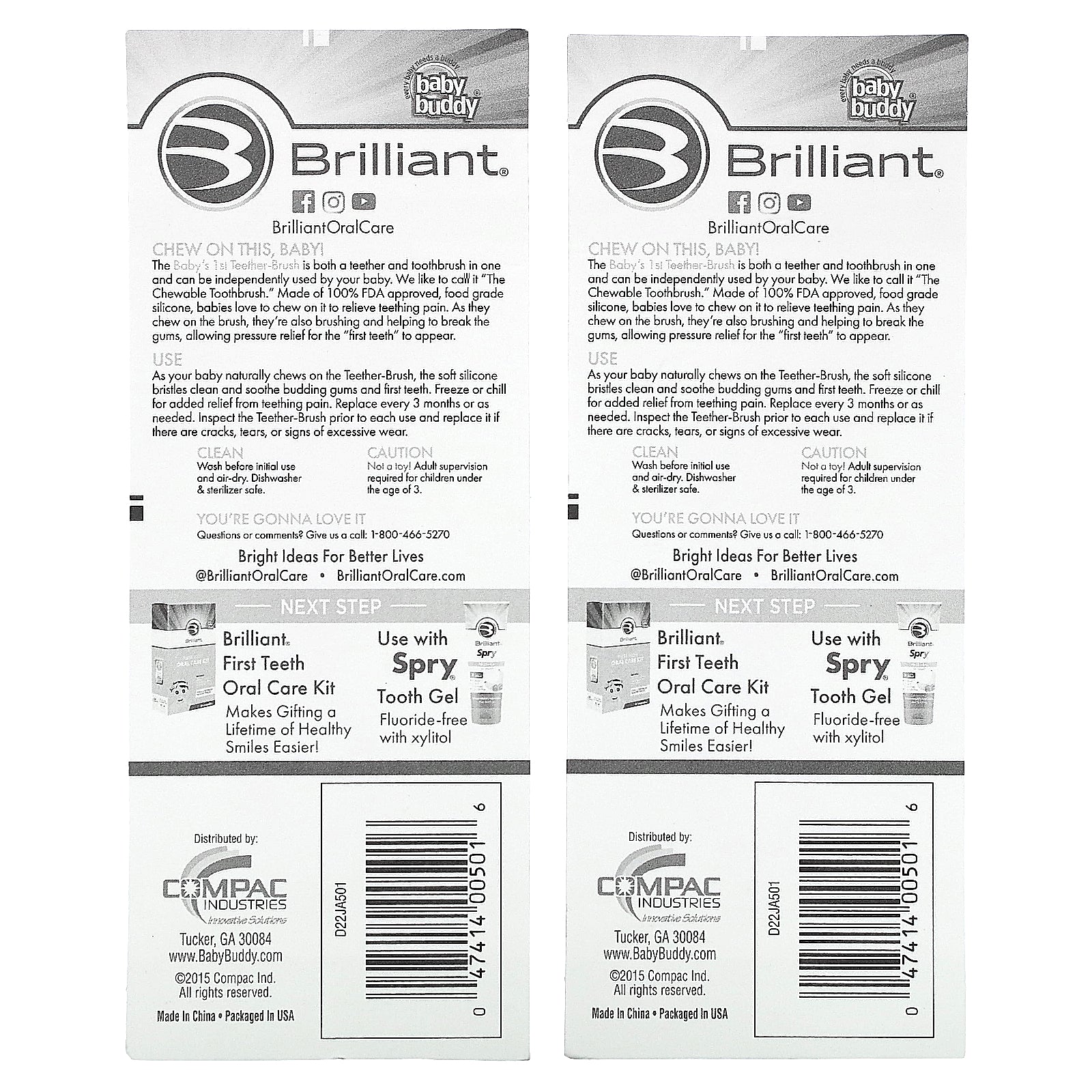 The Baby's 1st Teether-Brush is both a teether and toothbrush in one and can be independently used by your baby. We like to call it "The Chewable Toothbrush." Made of 100% FDA approved, food grade silicone, babies love to chew on it to relieve teething pain. As they chew on the brush, they're also brushing and helping to break the gums, allowing pressure relief for the "first teeth" to appear.