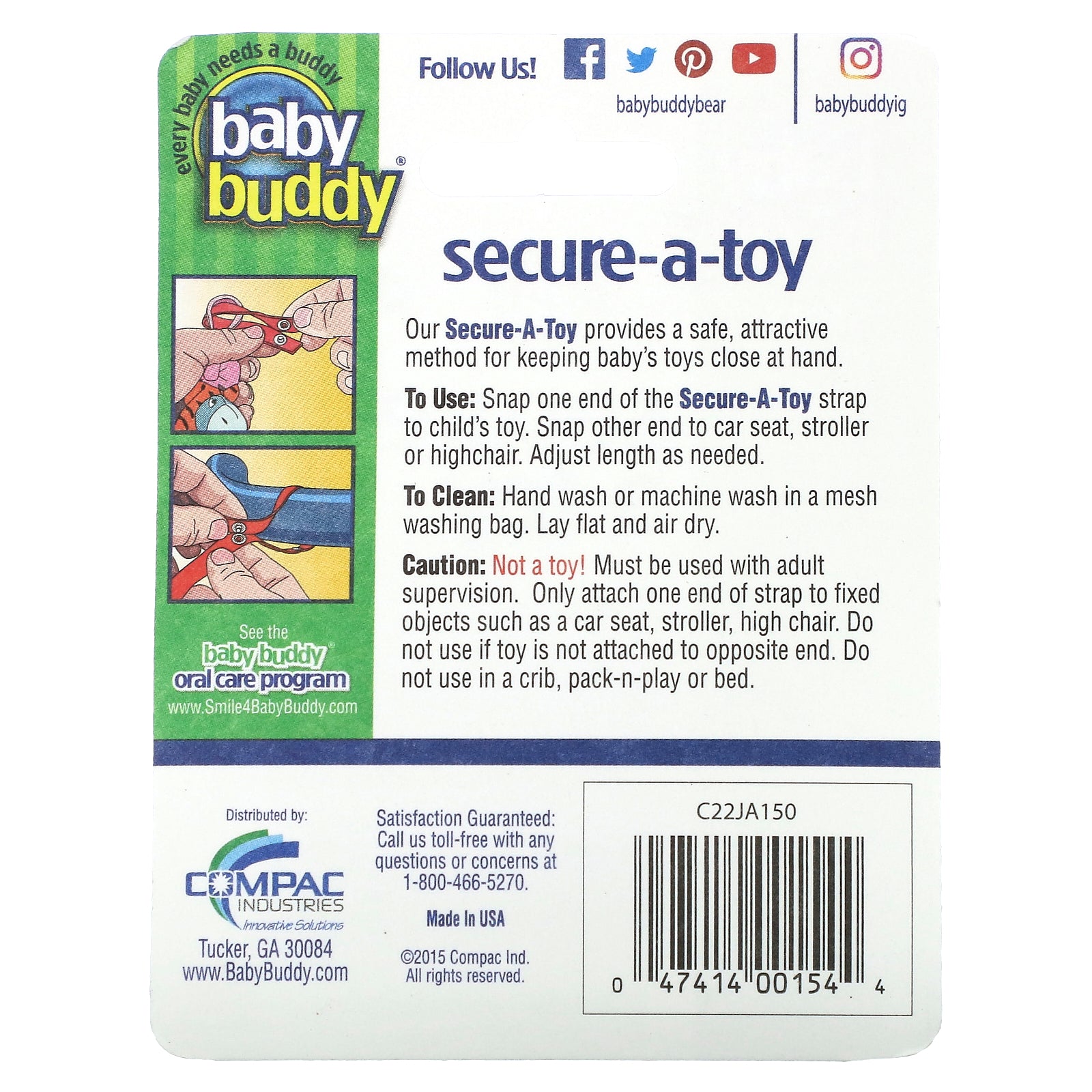Our Secure-A-Toy provides a safe, attractive method for keeping baby's toys close at hand.