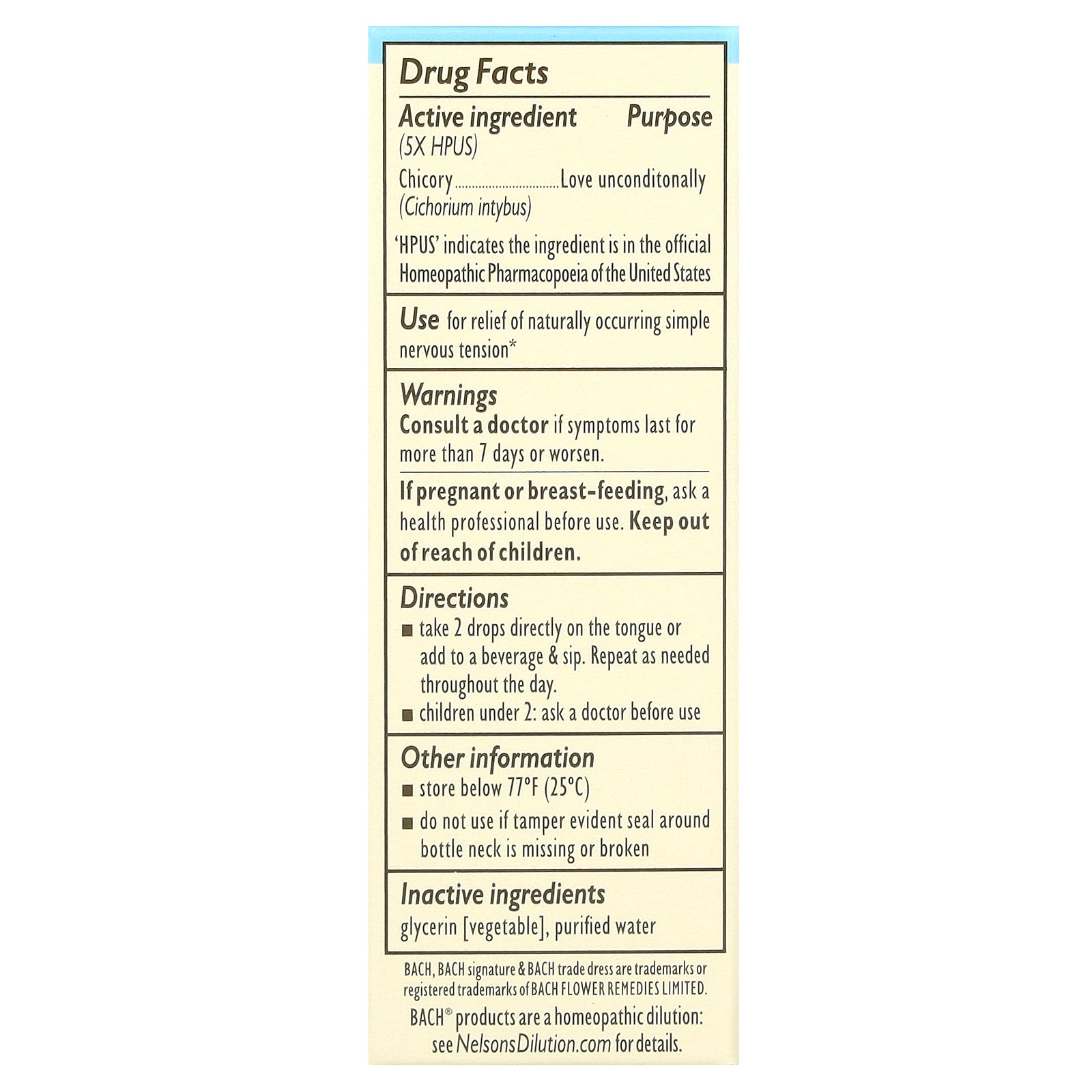 Bach, Original Flower Remedies, Chicory, 0.35 fl oz (10 ml)