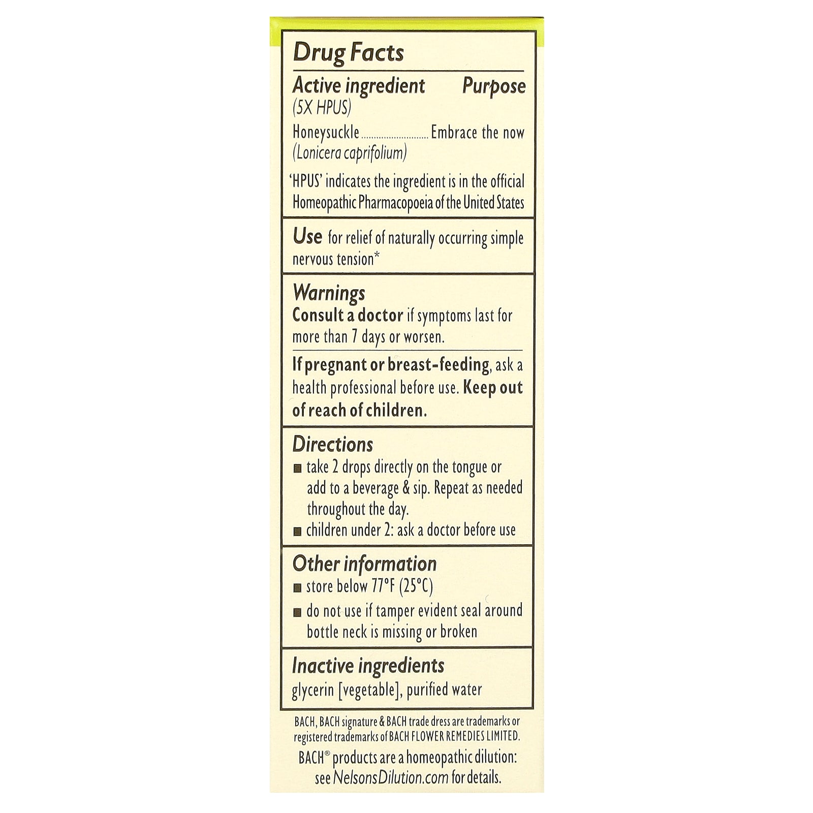 Bach, Original Flower Remedies, Honeysuckle , 0.35 fl oz (10 ml)