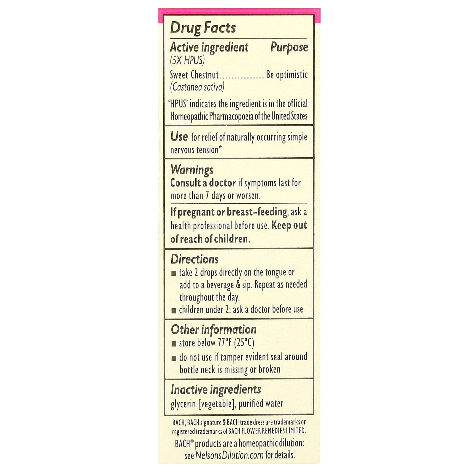 | (5x HPUS) Sweet Chestnut (Castanea sativa) | Be optimistic |