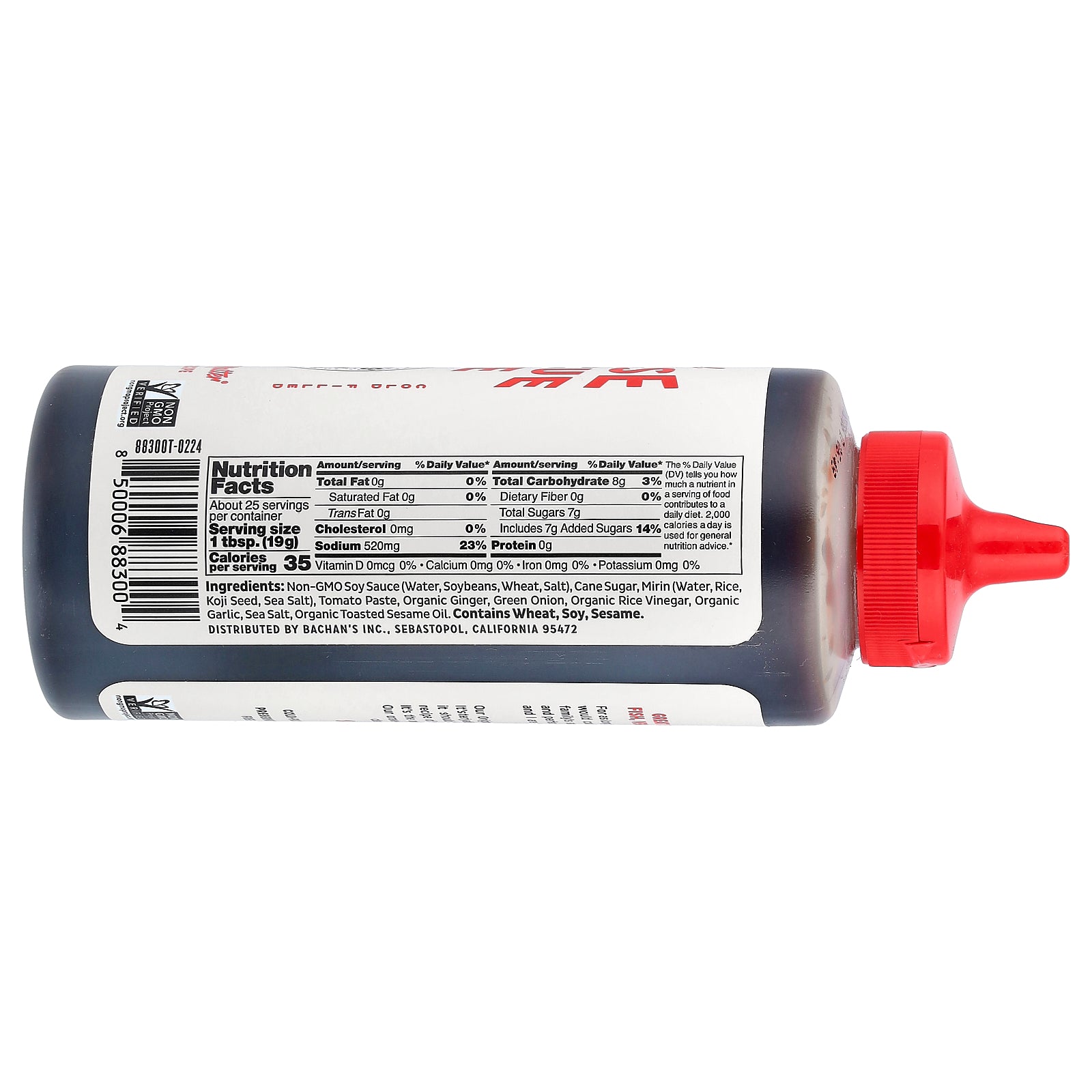 Non-GMO soy sauce (water, soybeans, wheat, salt), cane sugar, mirin (water, rice, koji seed, sea salt), tomato paste, organic ginger, green onion, organic rice vinegar, organic garlic, sea salt, organic toasted sesame oil.